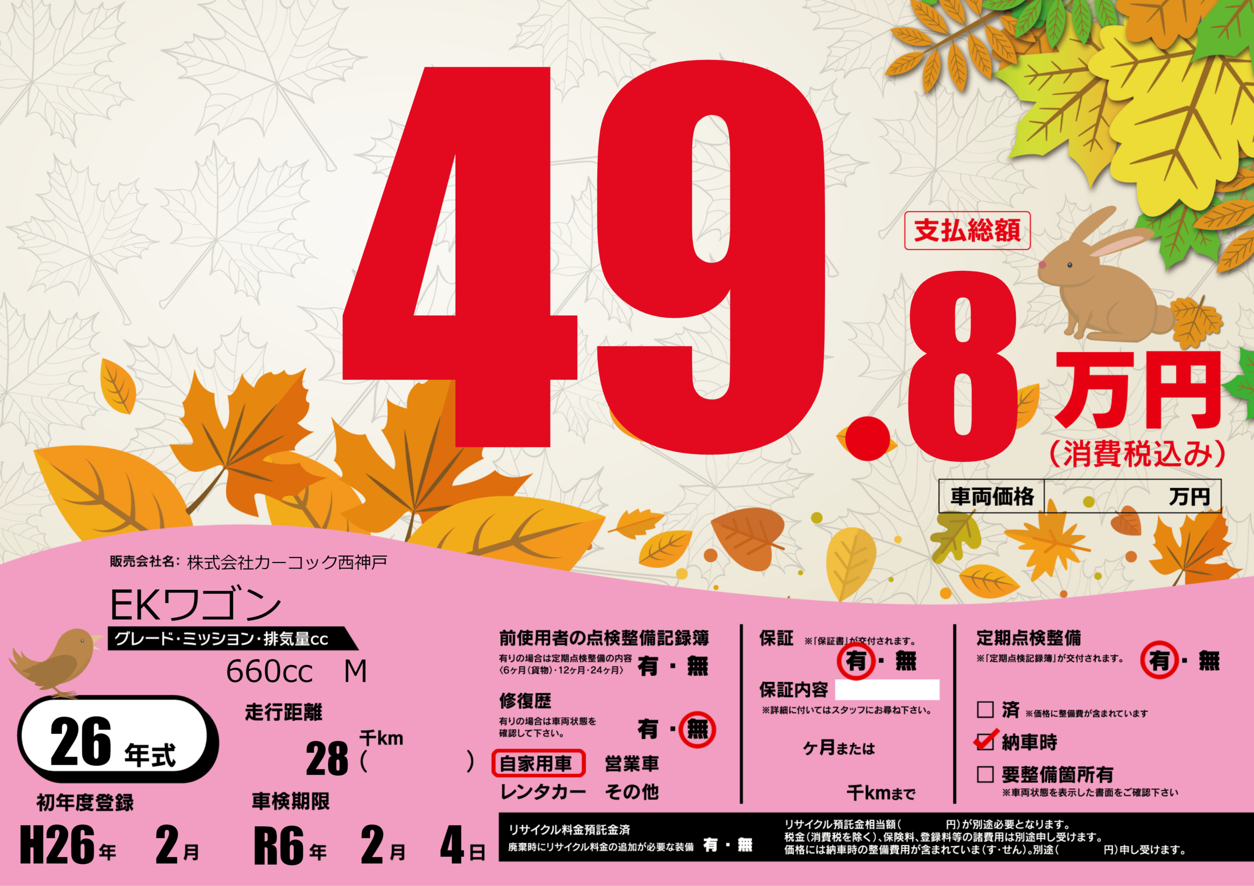| 車名 | EKワゴン | グレード ミッション 排気量 |