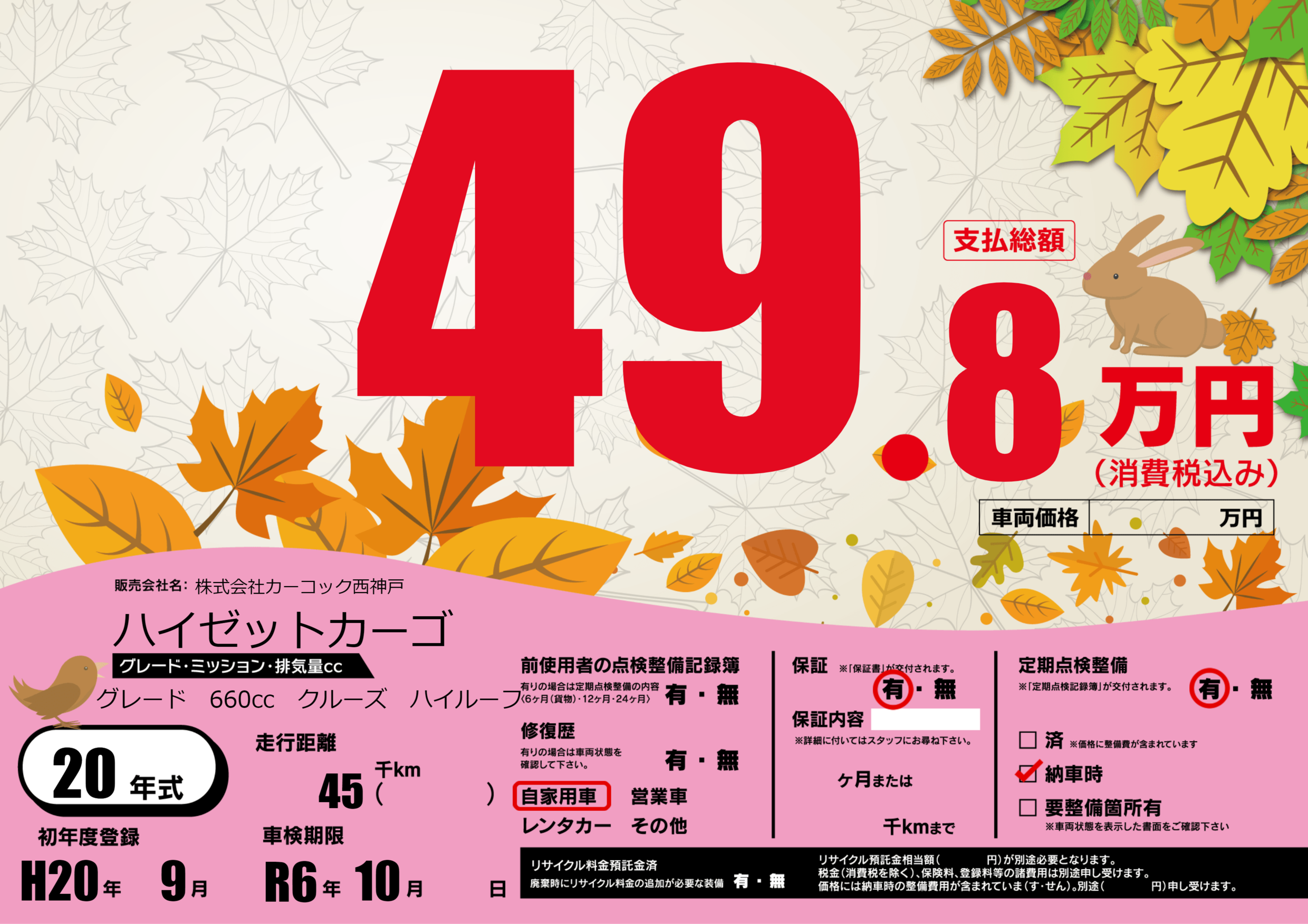| 車名 | ハイゼットカーゴ | グレード ミッション 排気量 |