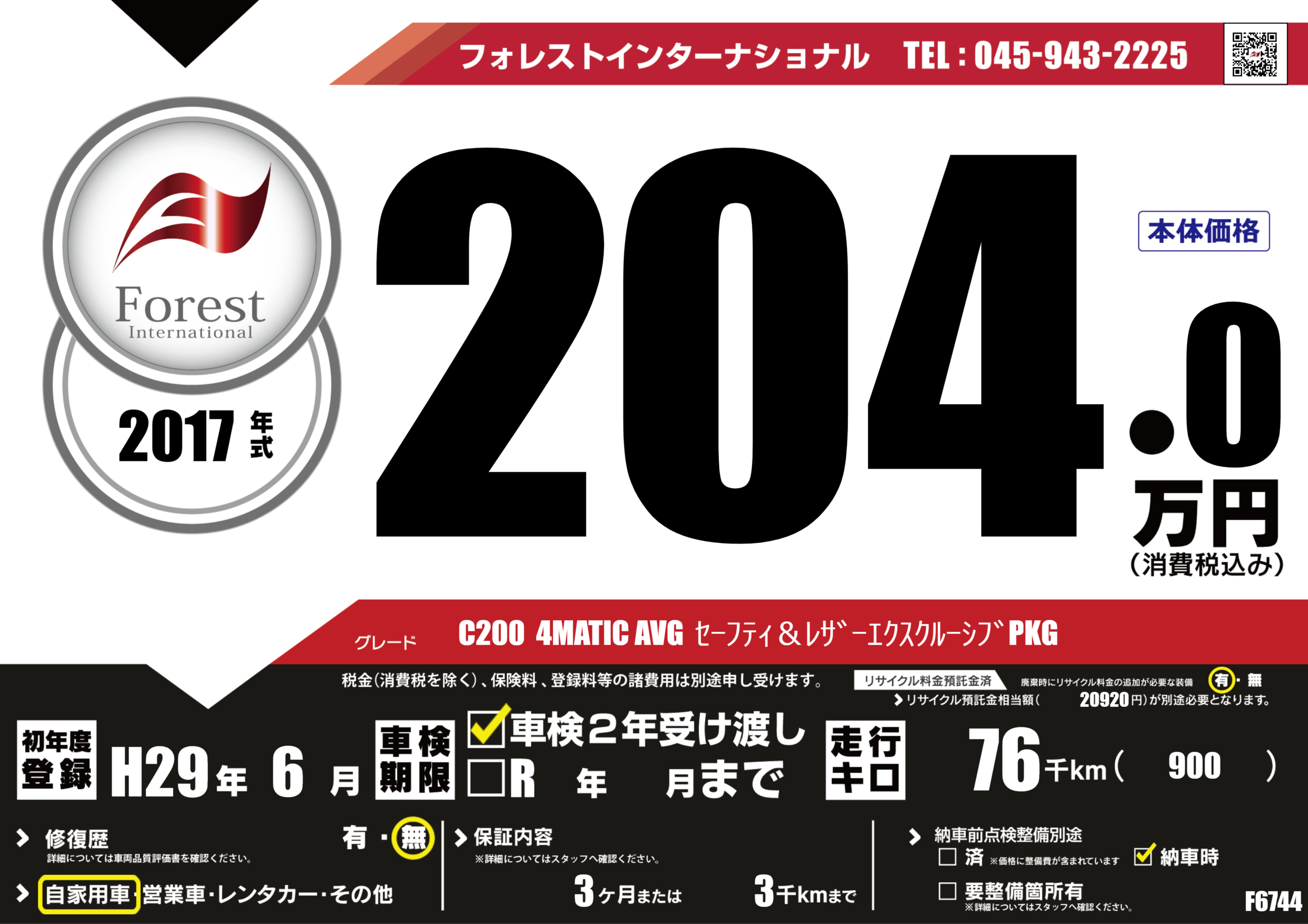 C200 4MATIC AVG セーフティ&レザーエクスクルーシブPKG |