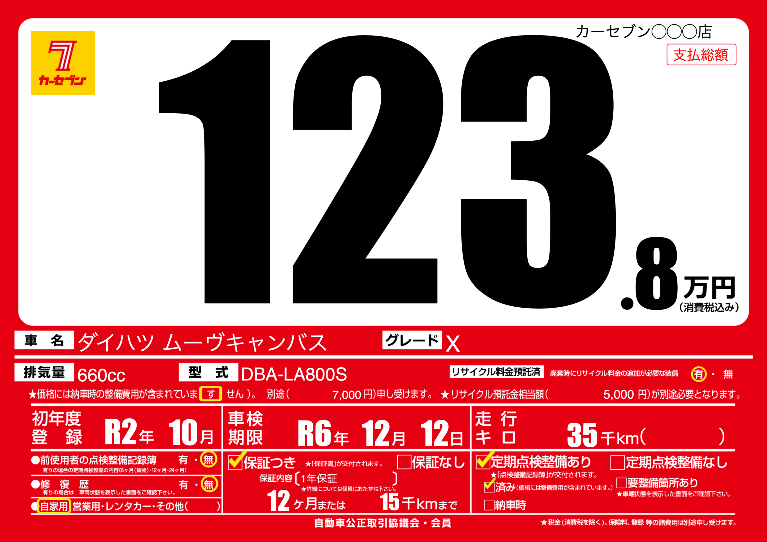 | 定期点検整備 | 定期点検整備あり 定期点検整備済み | ||