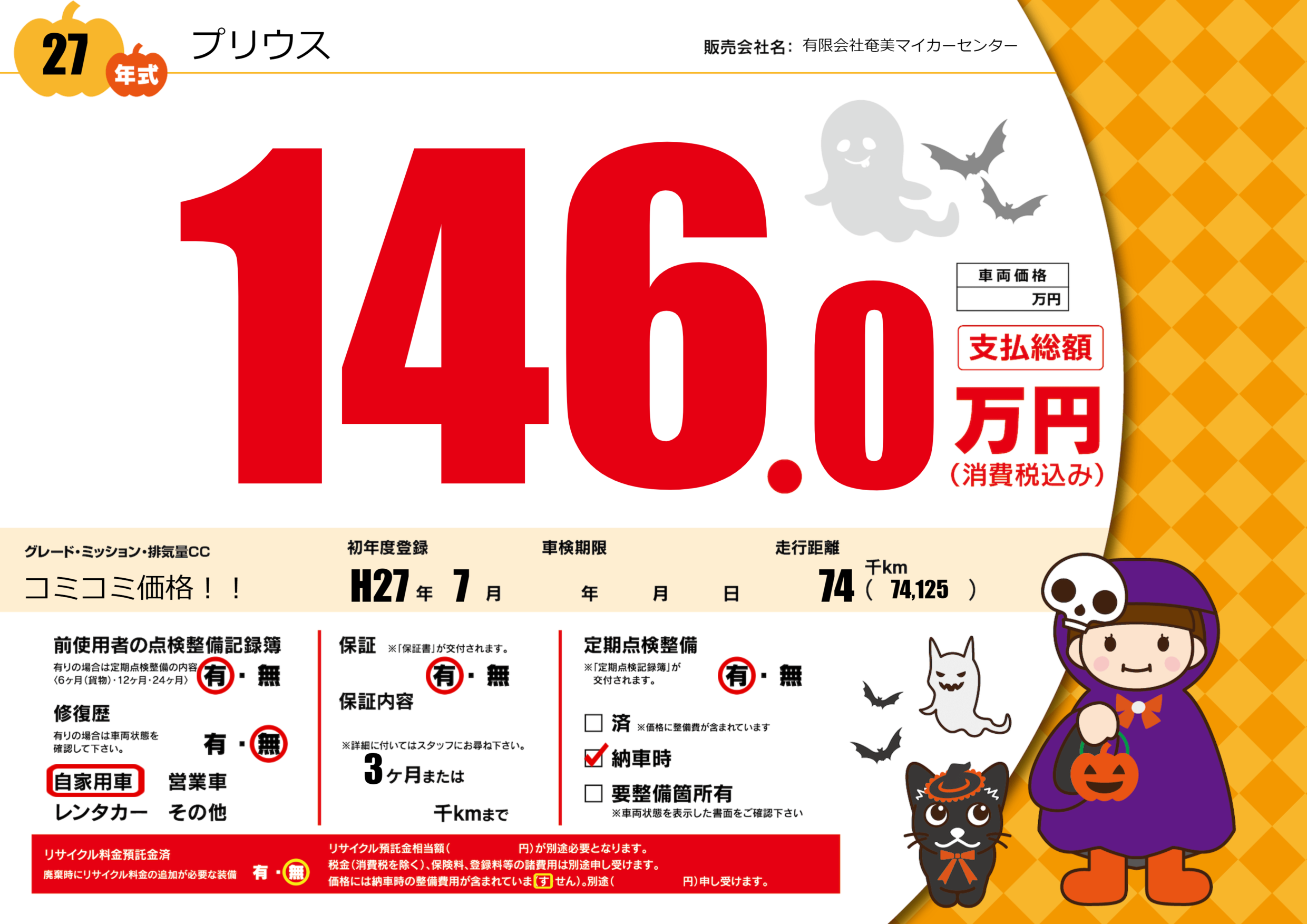 | 定期点検整備 | 定期点検整備あり 納車時あり | ||