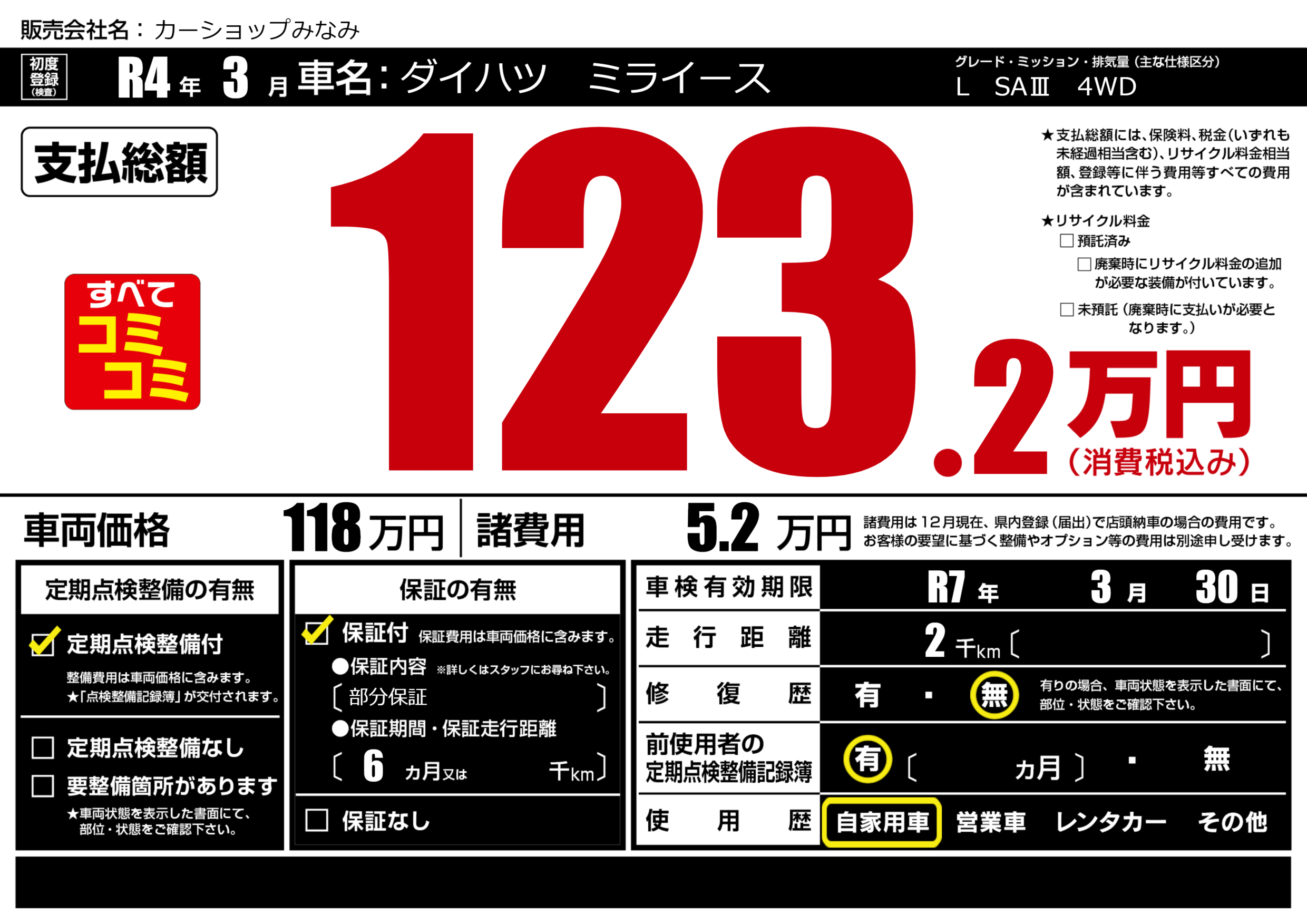 | 車検制限 | R7年 3月 30日 | ||