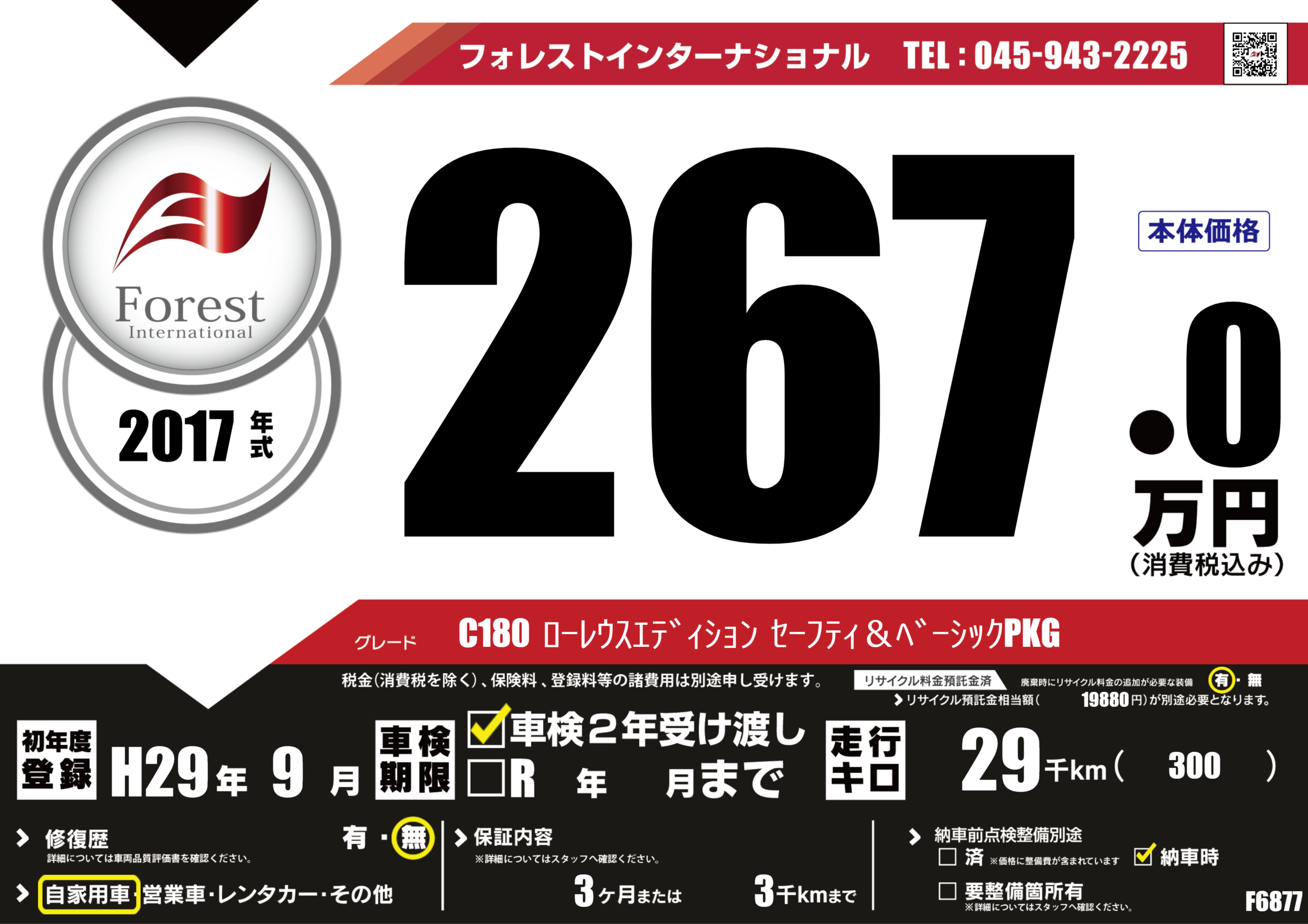 | 走行キロ | 2.9万km | 初年度登録 | H29年9月 |