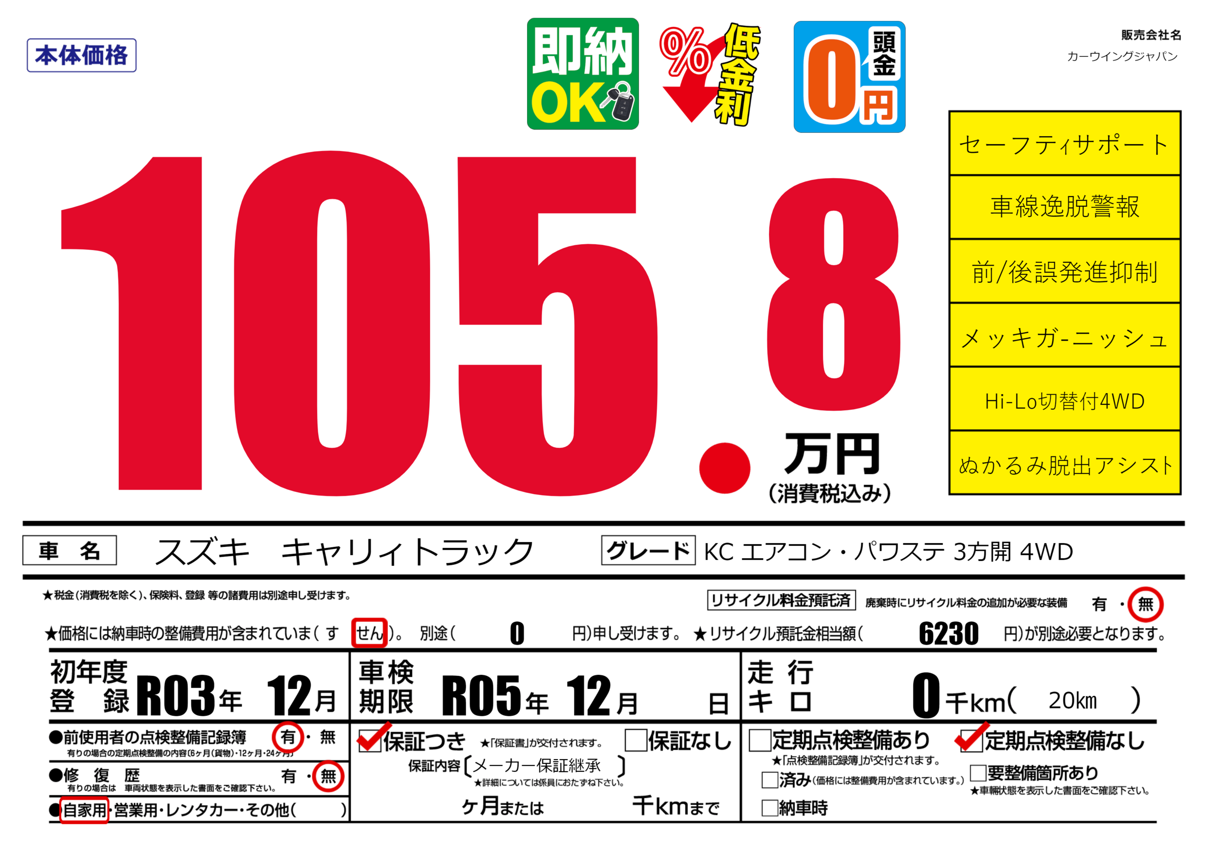 保証付き 保証内容(メーカー保証継承) ---ヶ月または()千kmまで |