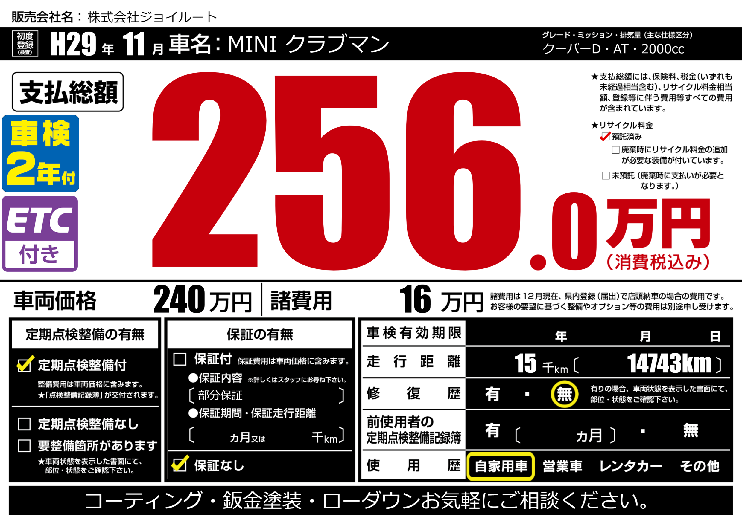 | 納車時の 整備費用 |