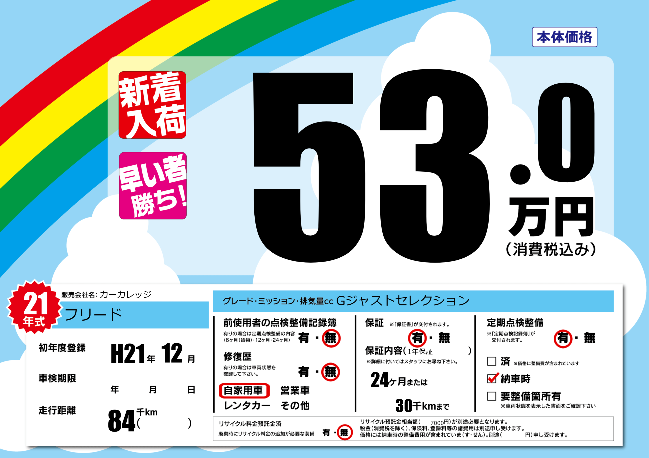 | 走行キロ | 8.4万km | 初年度登録 | H21年12月 |