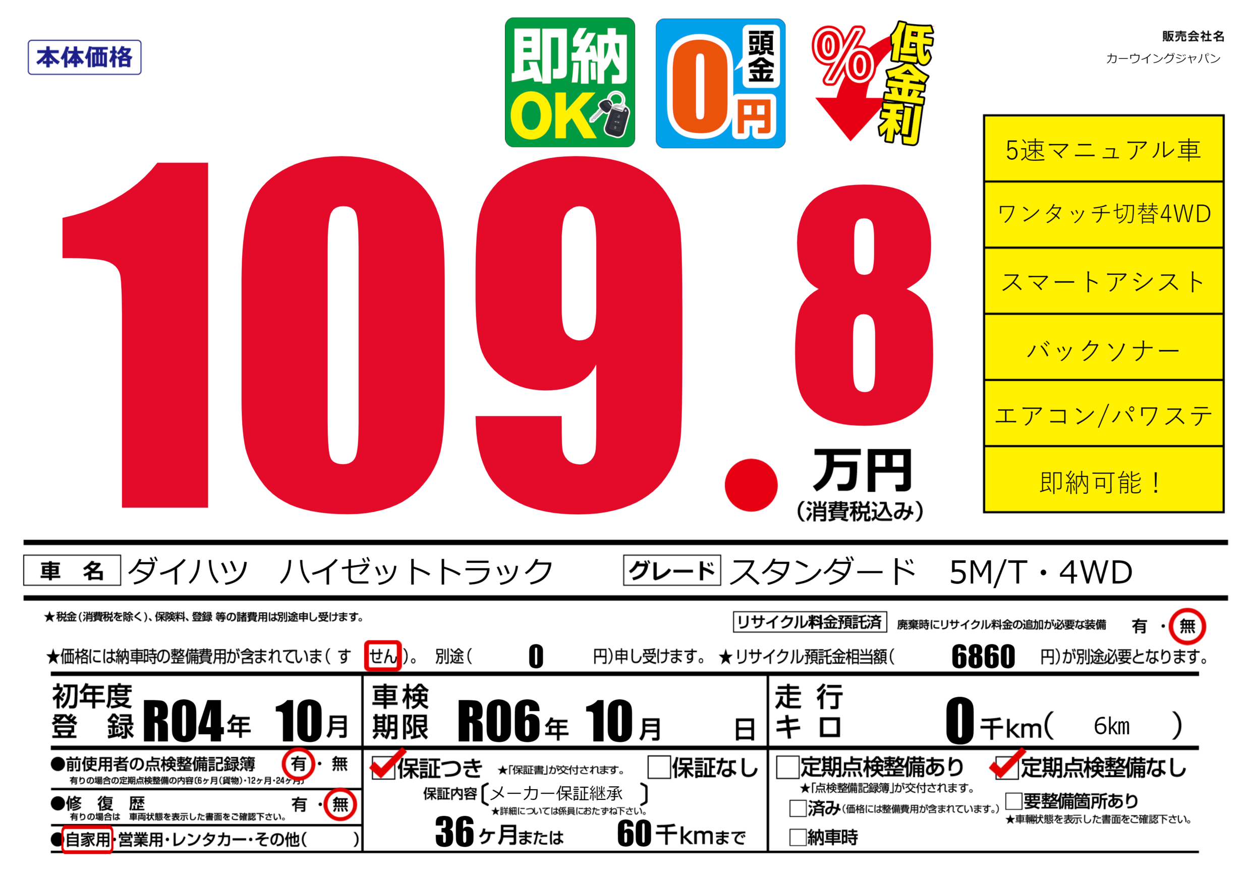 保証付き 保証内容(メーカー保証継承) 36ヶ月または(60)千kmまで |