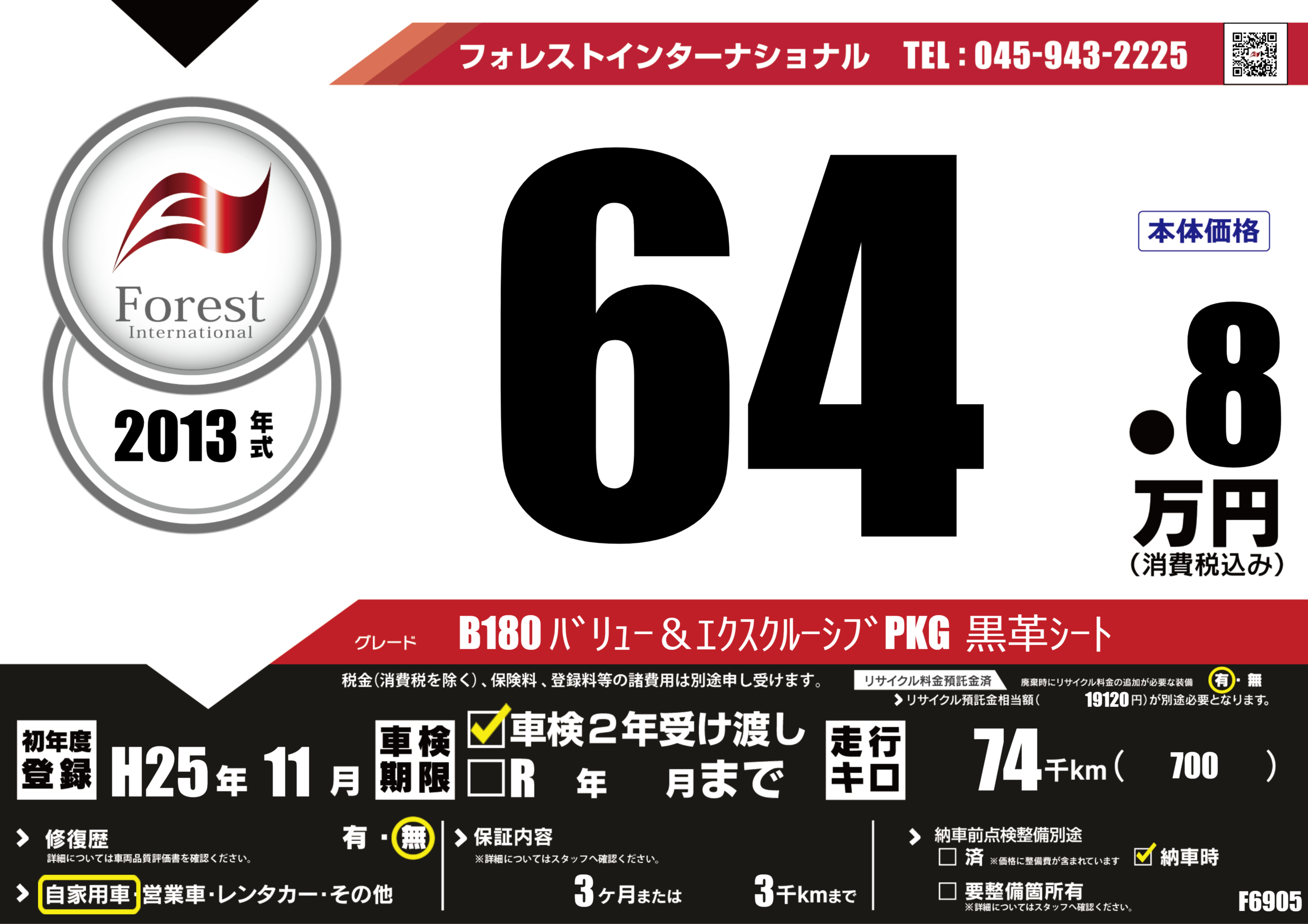 B180 バリュー&エクスクルーシブPKG 黒革シート |