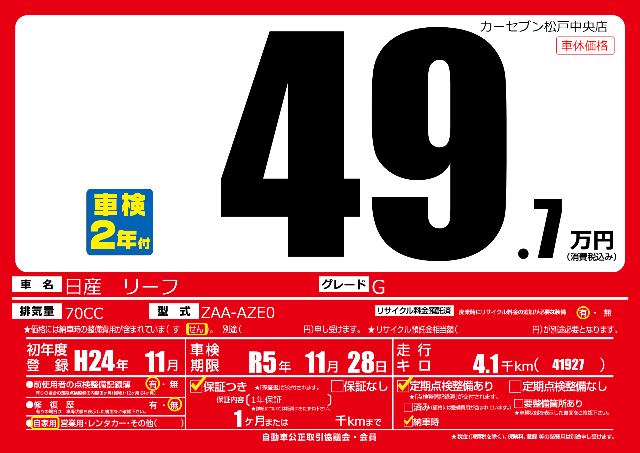 なし | 車検制限 | R5年11月28月 |