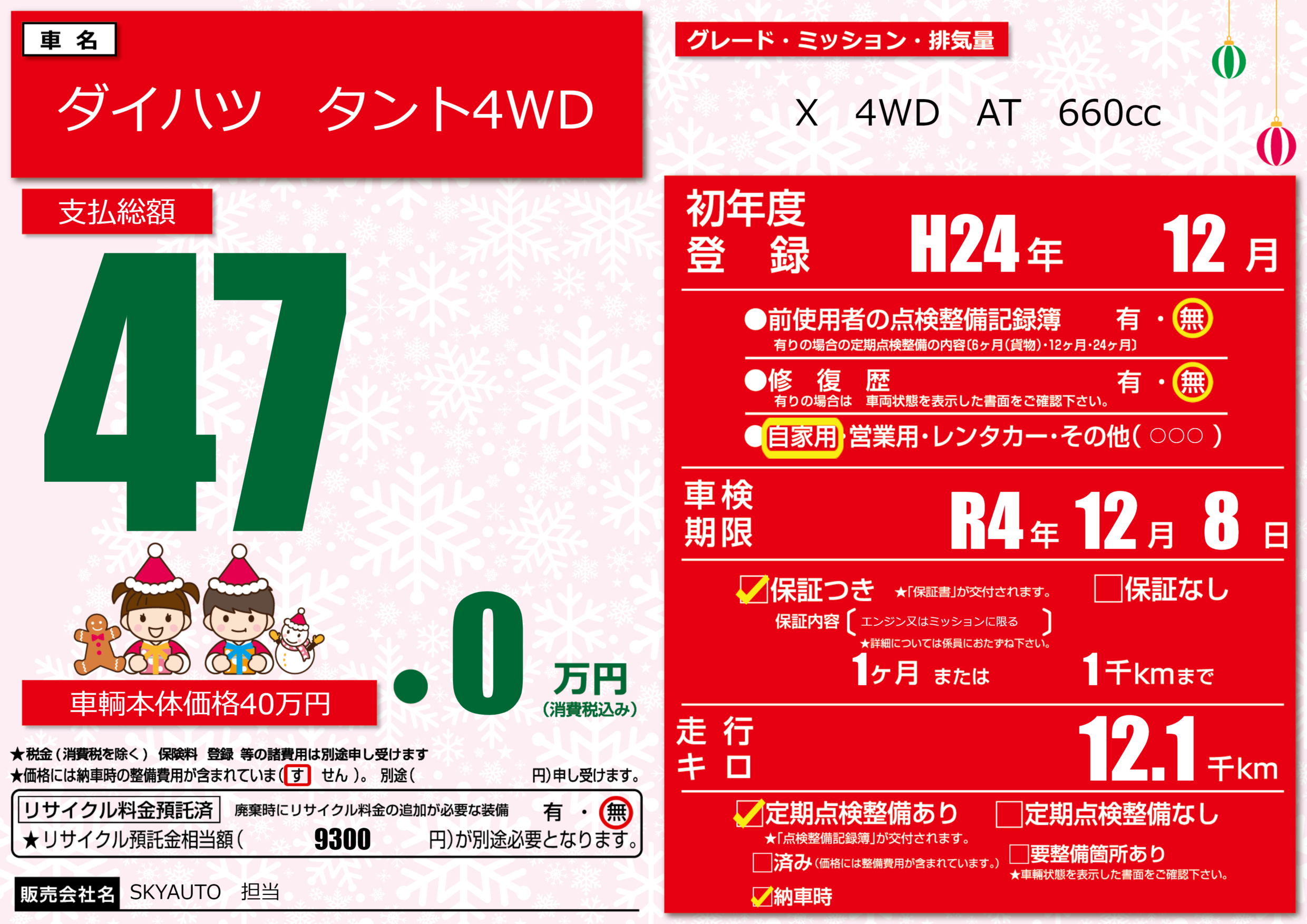 | 車検制限 | R4年 12月 8日 | ||