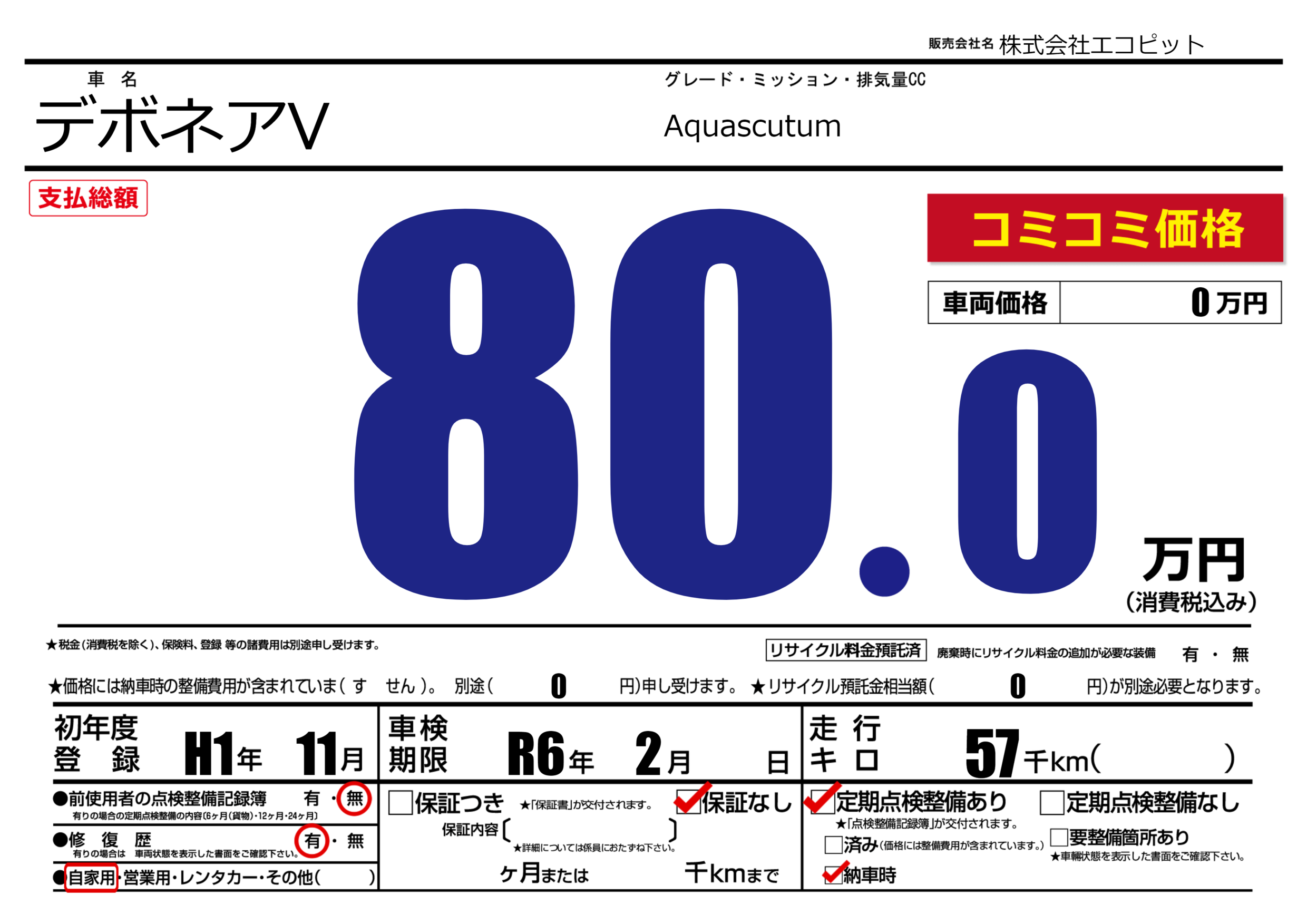 なし | 車検制限 | R6年2月---月 |