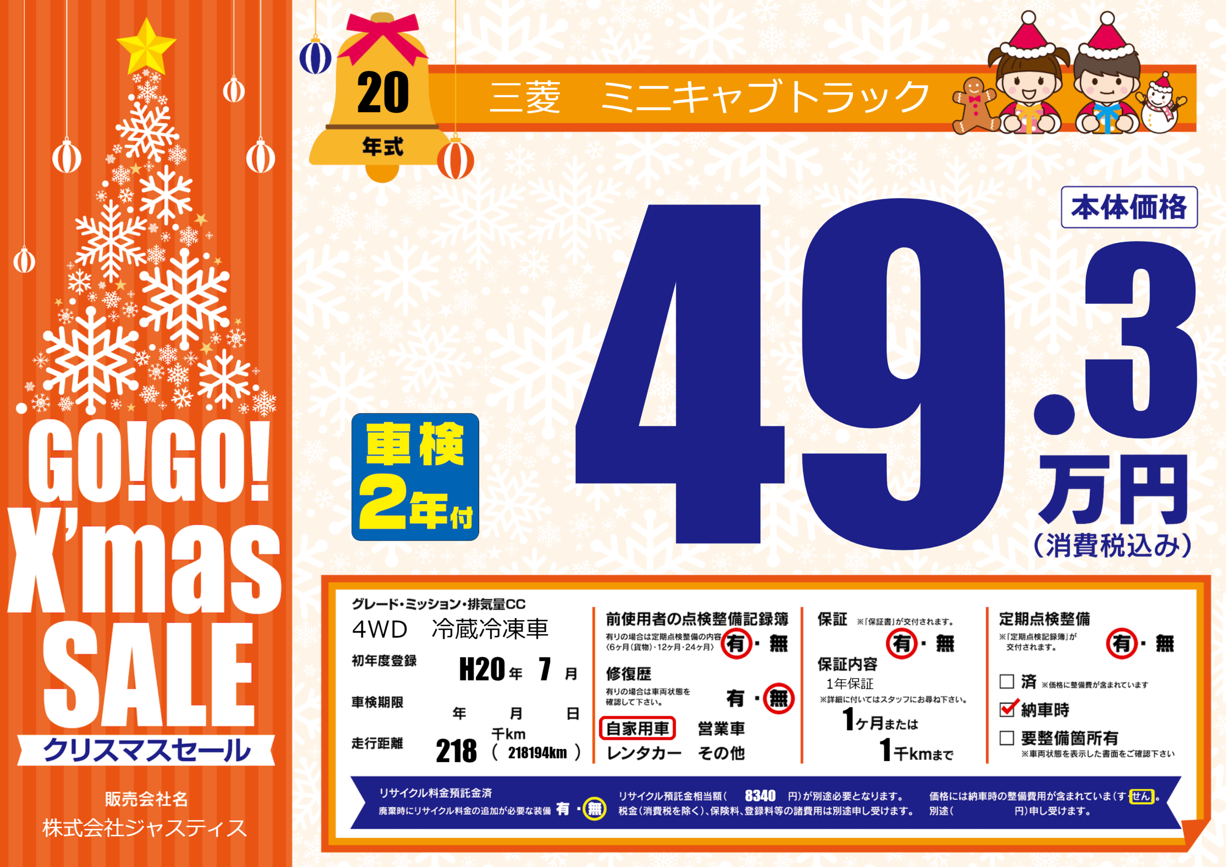 | 定期点検整備 | 定期点検整備あり 納車時あり | ||