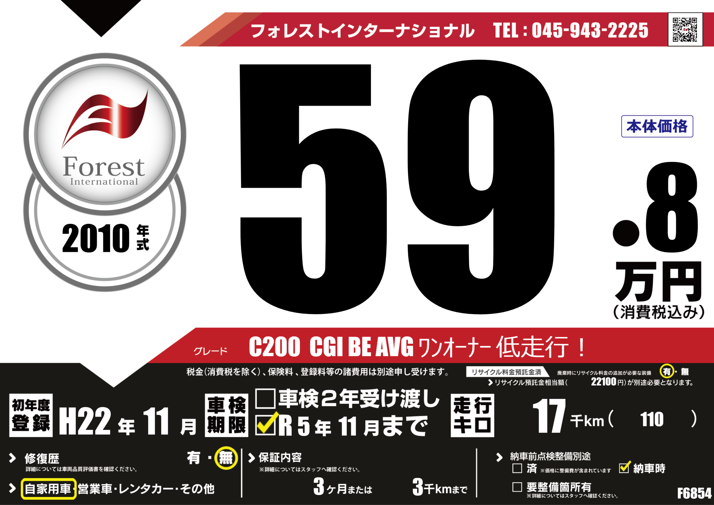| 走行キロ | 1.7万km | 初年度登録 | H22年11月 |