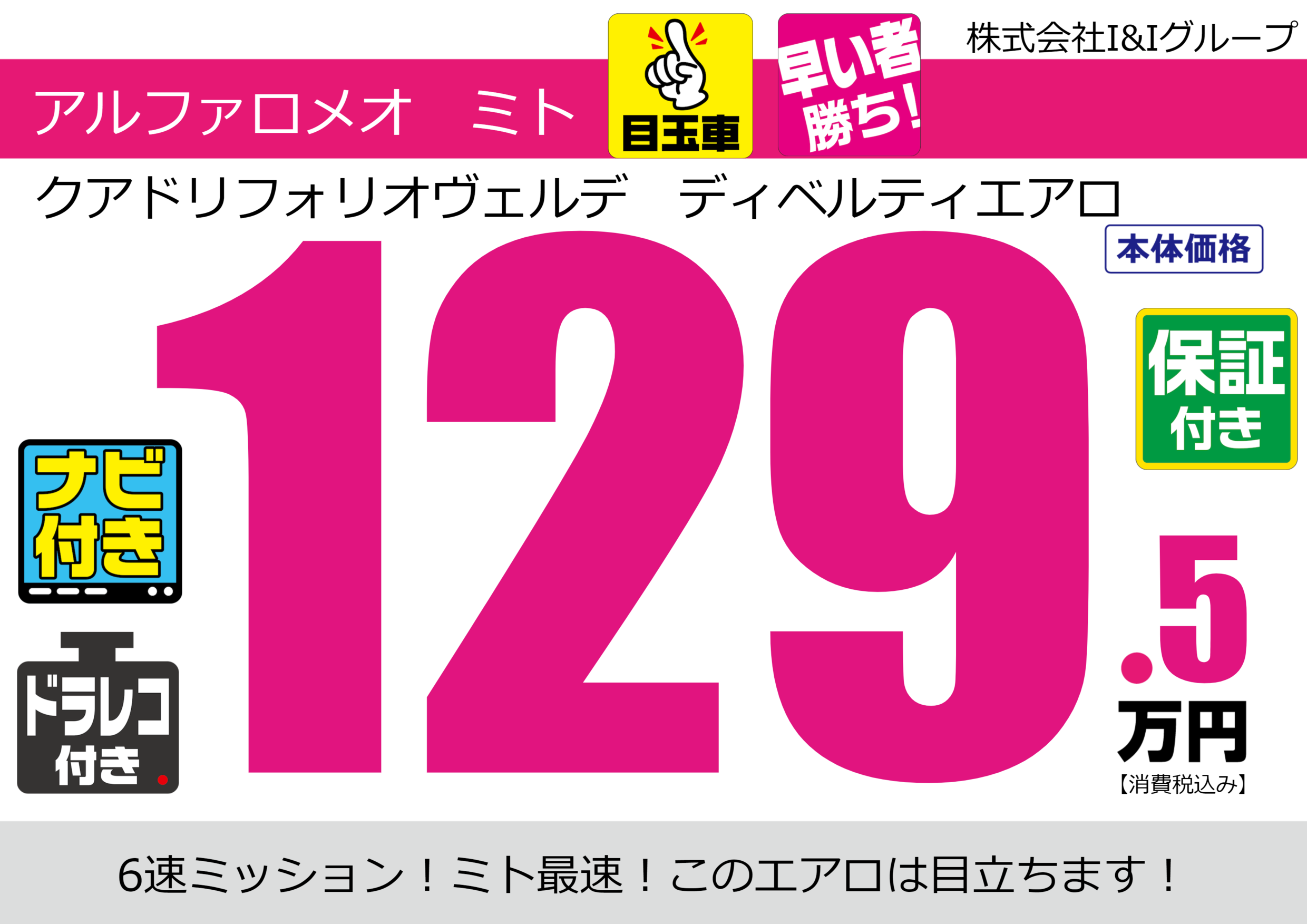 | 車名 | アルファロメオ ミト | グレード ミッション 排気量 |