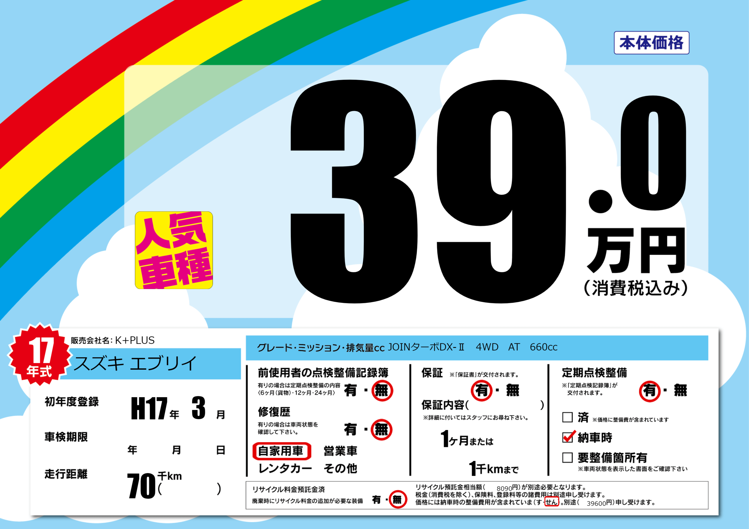 | 車名 | スズキ エブリイ | グレード ミッション 排気量 |