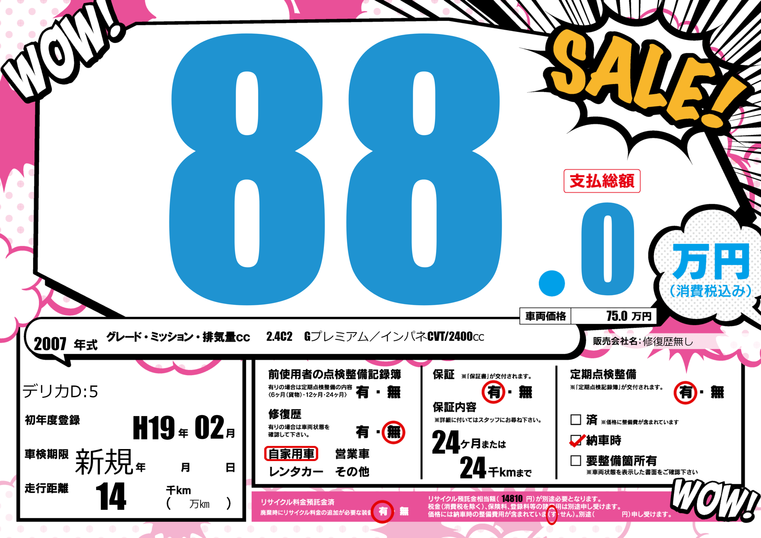 | 車名 | デリカD:5 | グレード ミッション 排気量 |