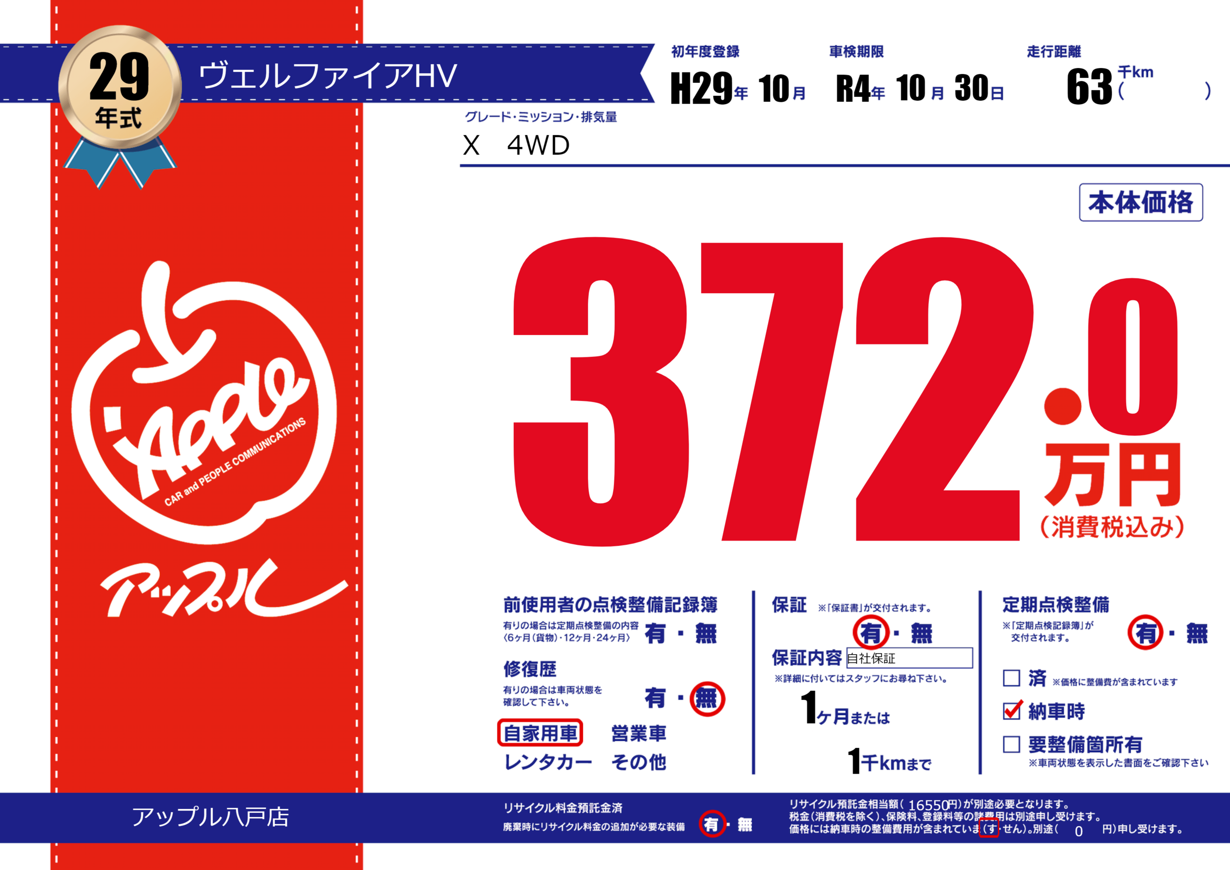 | 車検制限 | R4年 10月 30日 | ||