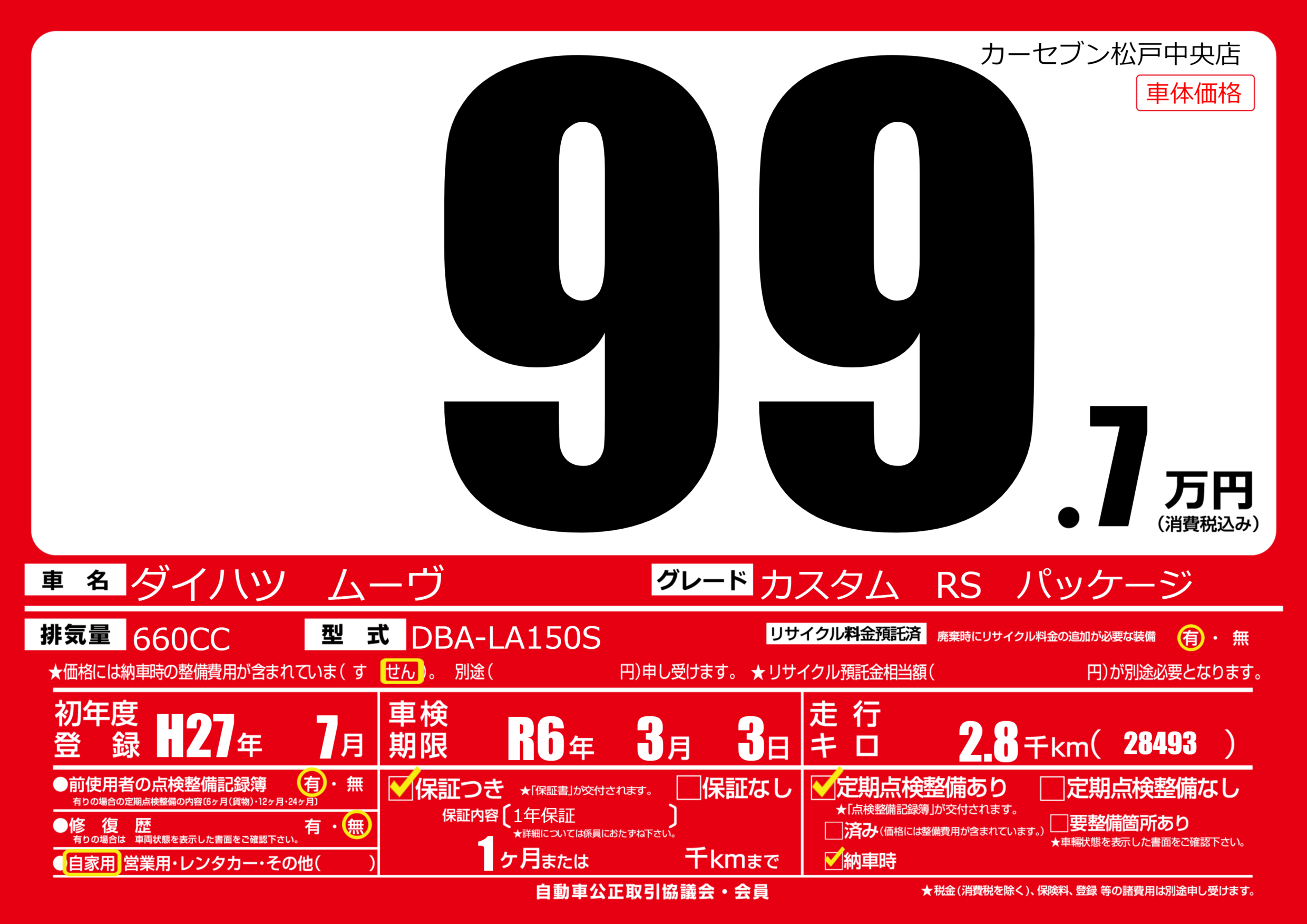 | 初年度登録 | H27年7月 | ||