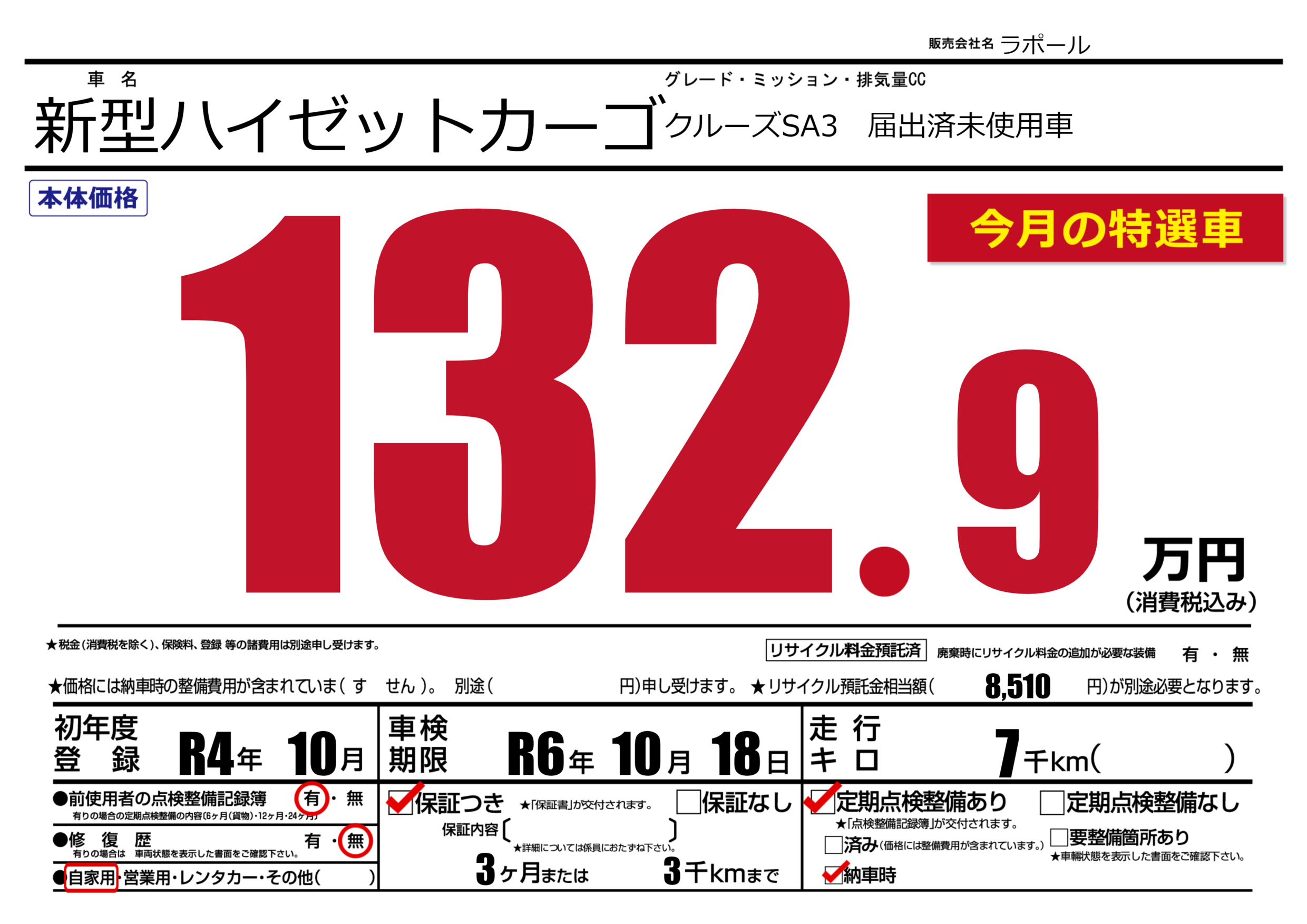 株式会社ラポール 軽バンマーケットの展示車をすべて見る