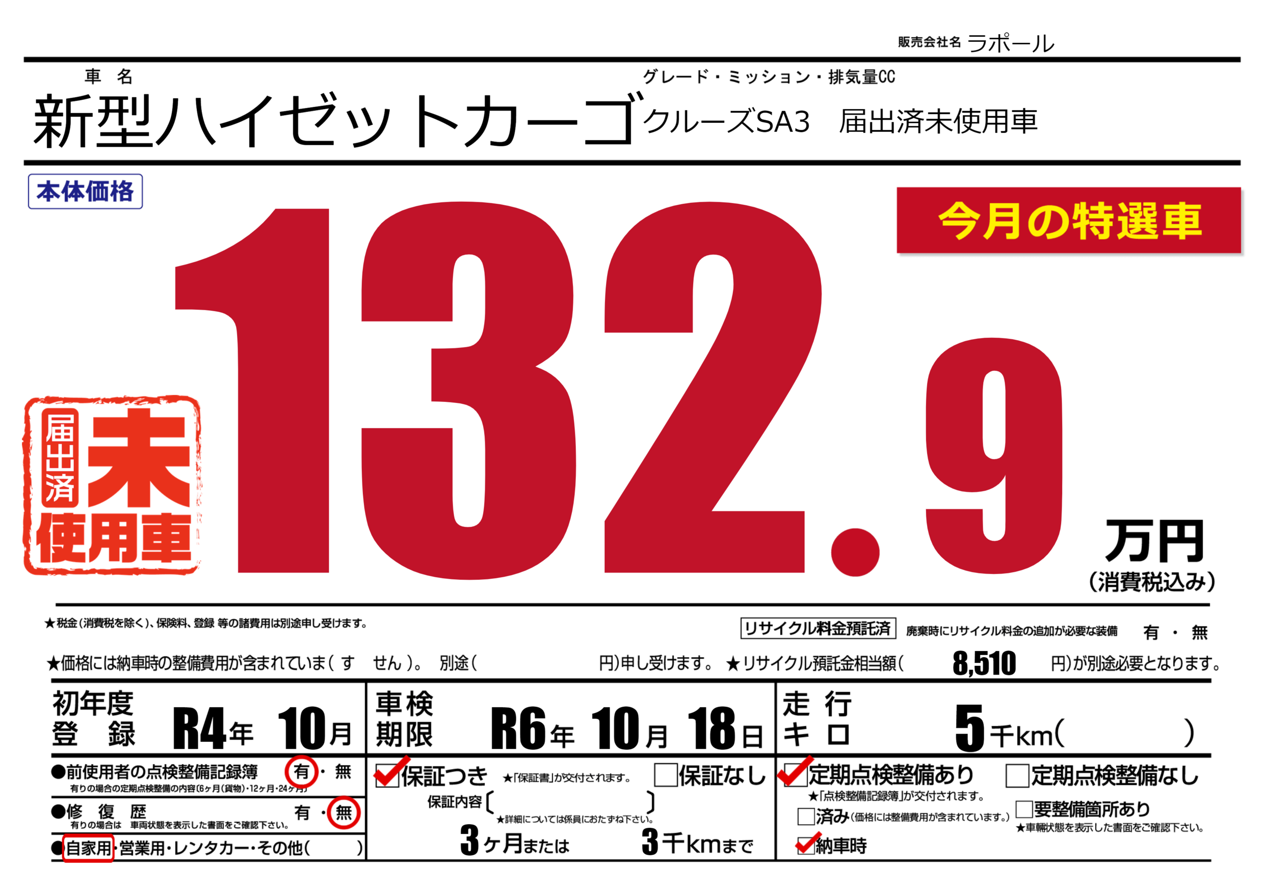 保証付き 保証内容(---) 3ヶ月または(3)千kmまで |