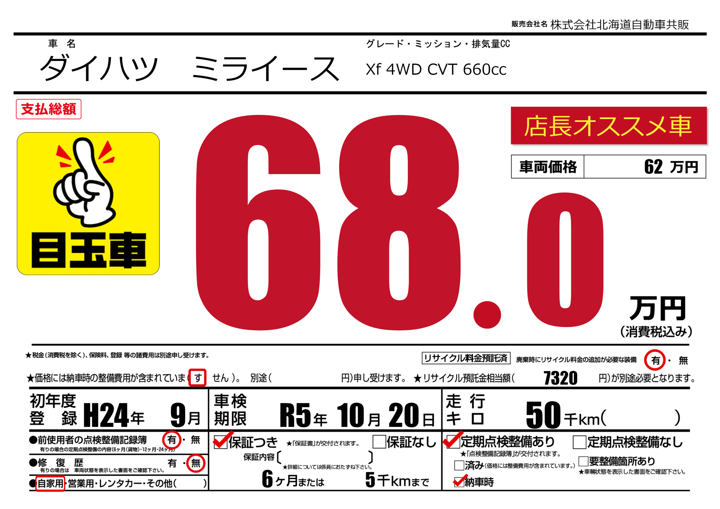 | 車検制限 | R5年 10月 20日 | ||