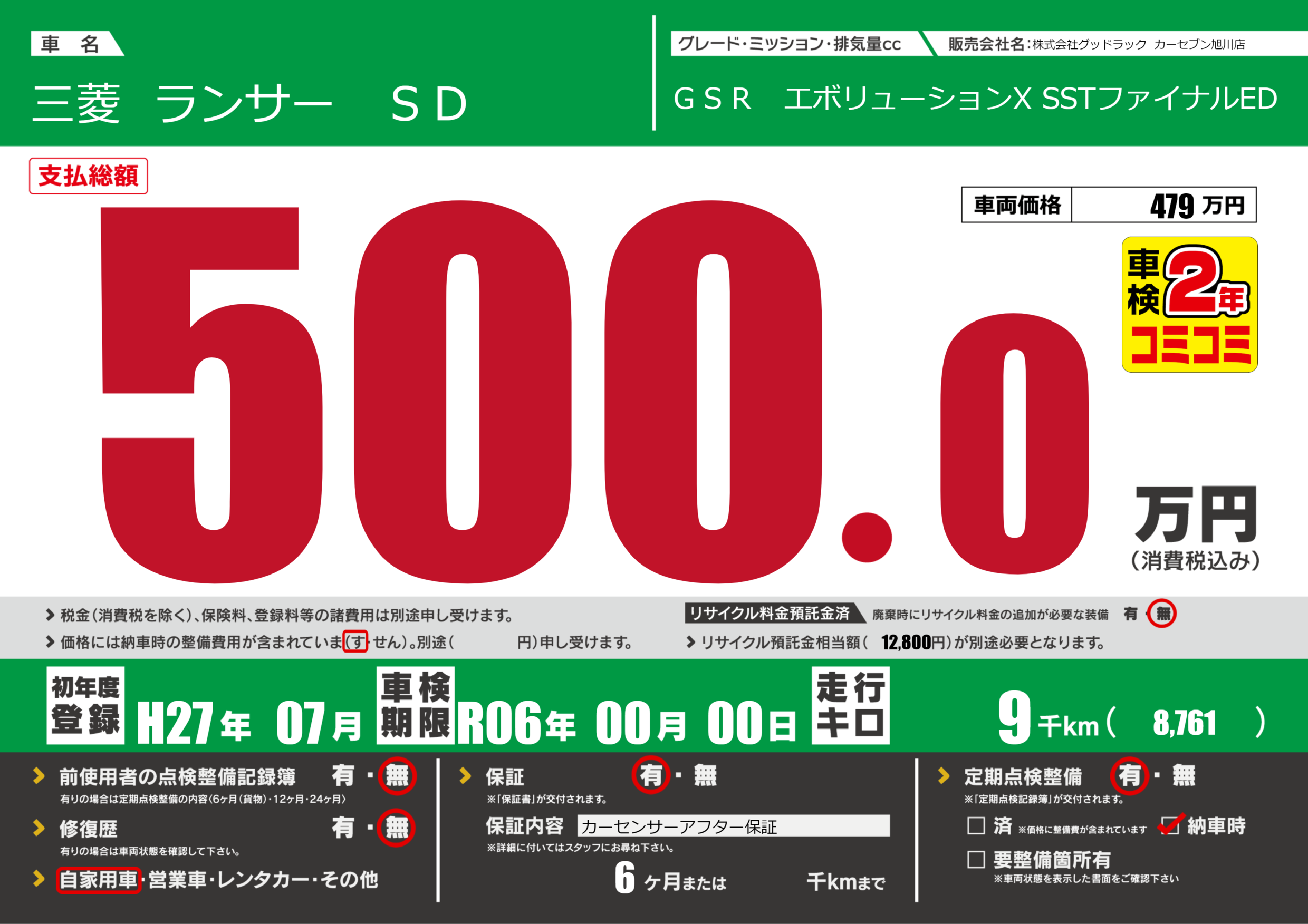 | 車検制限 | R06年 00月 00日 | ||