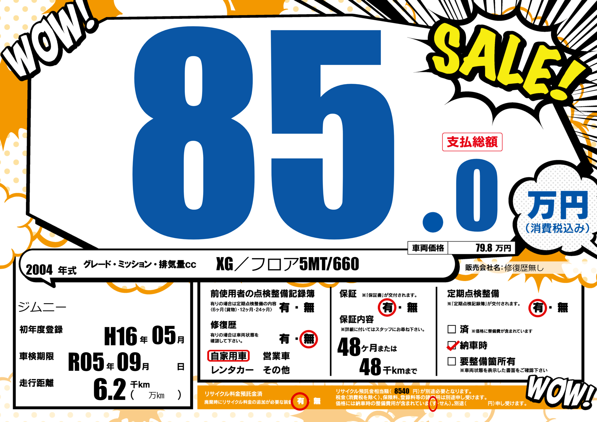 | 車検制限 | R05年 09月 - 日 | ||