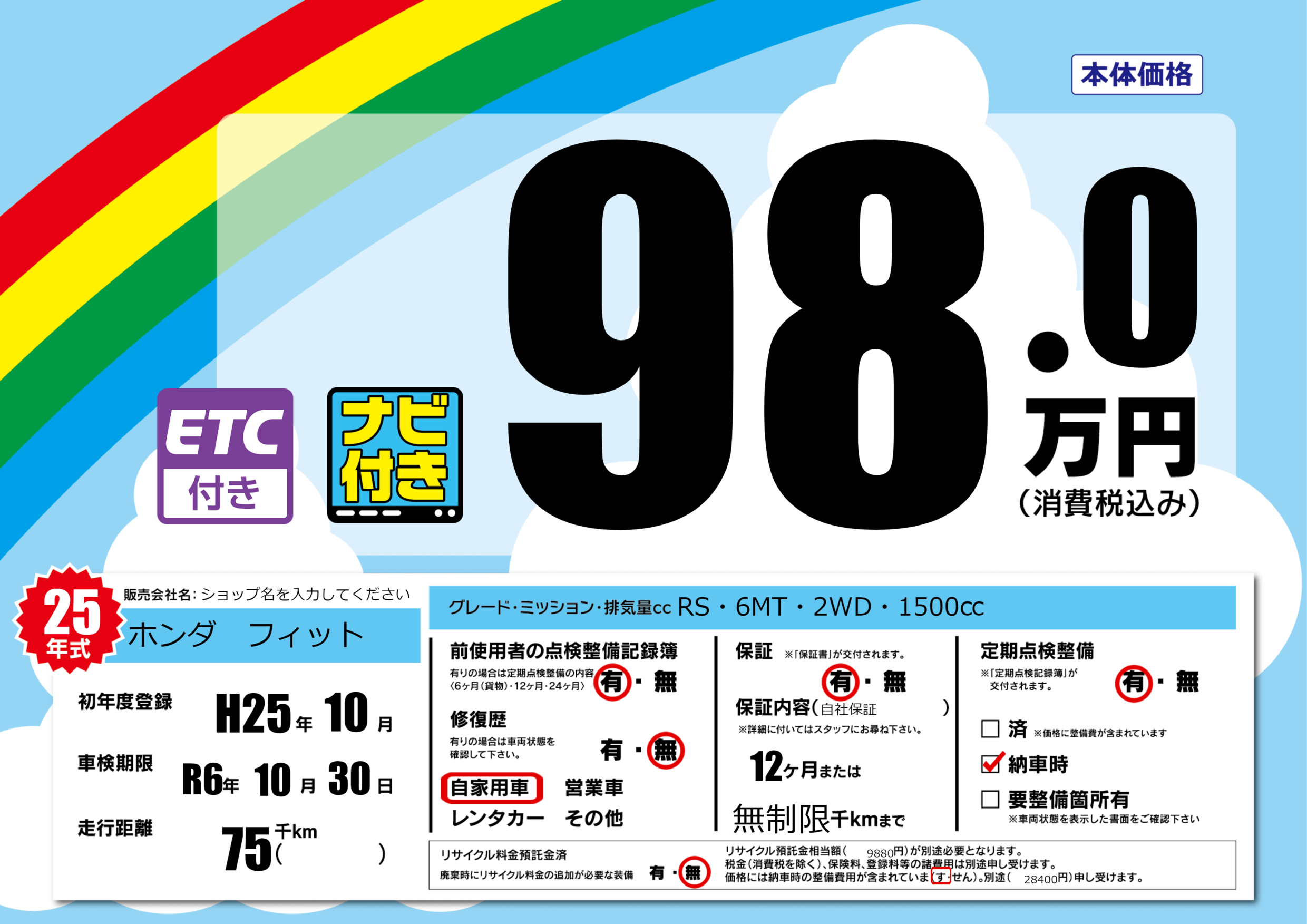 | 車名 | ホンダ フィット | グレード ミッション 排気量 |