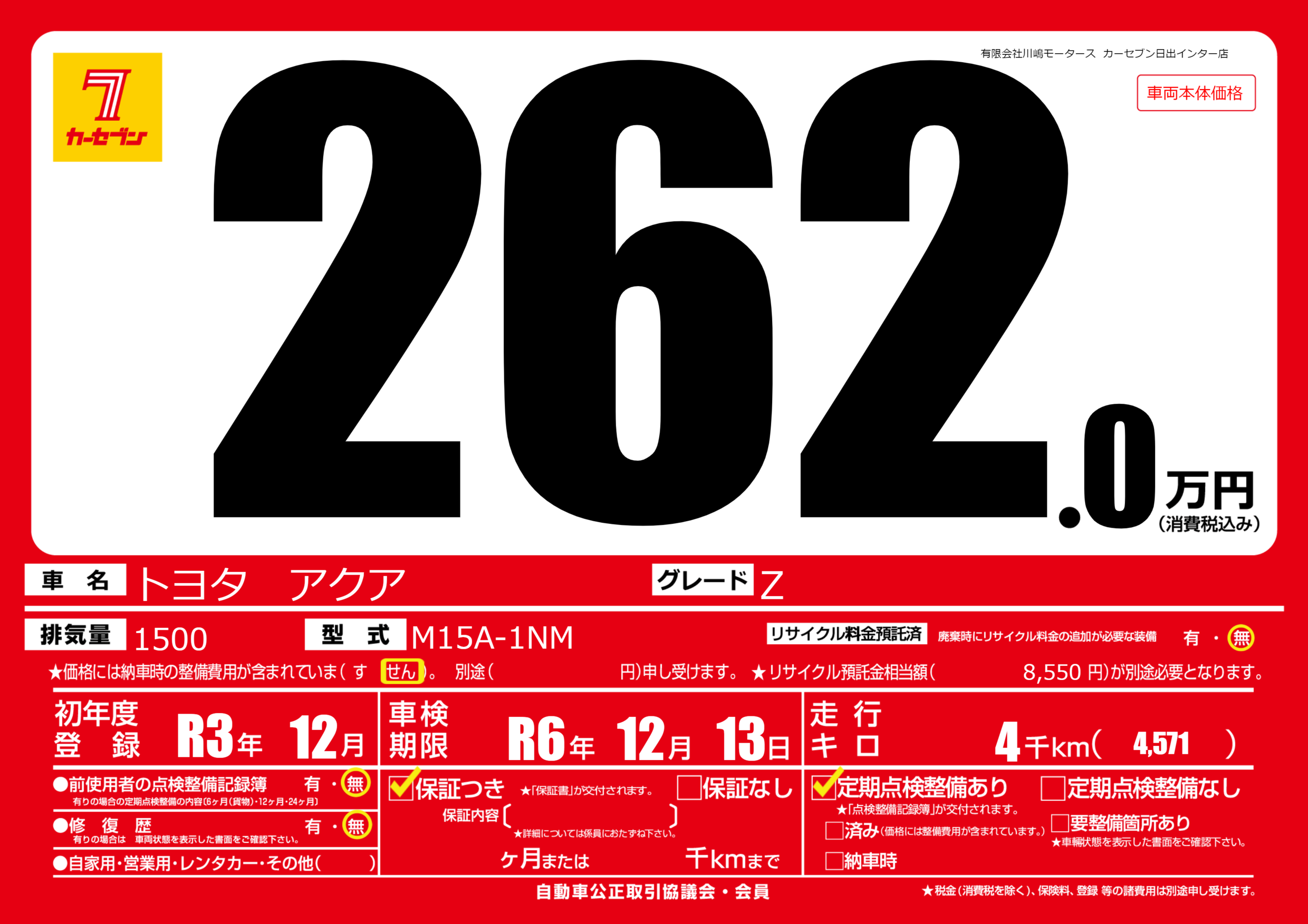なし | 車検制限 | R6年12月13月 |
