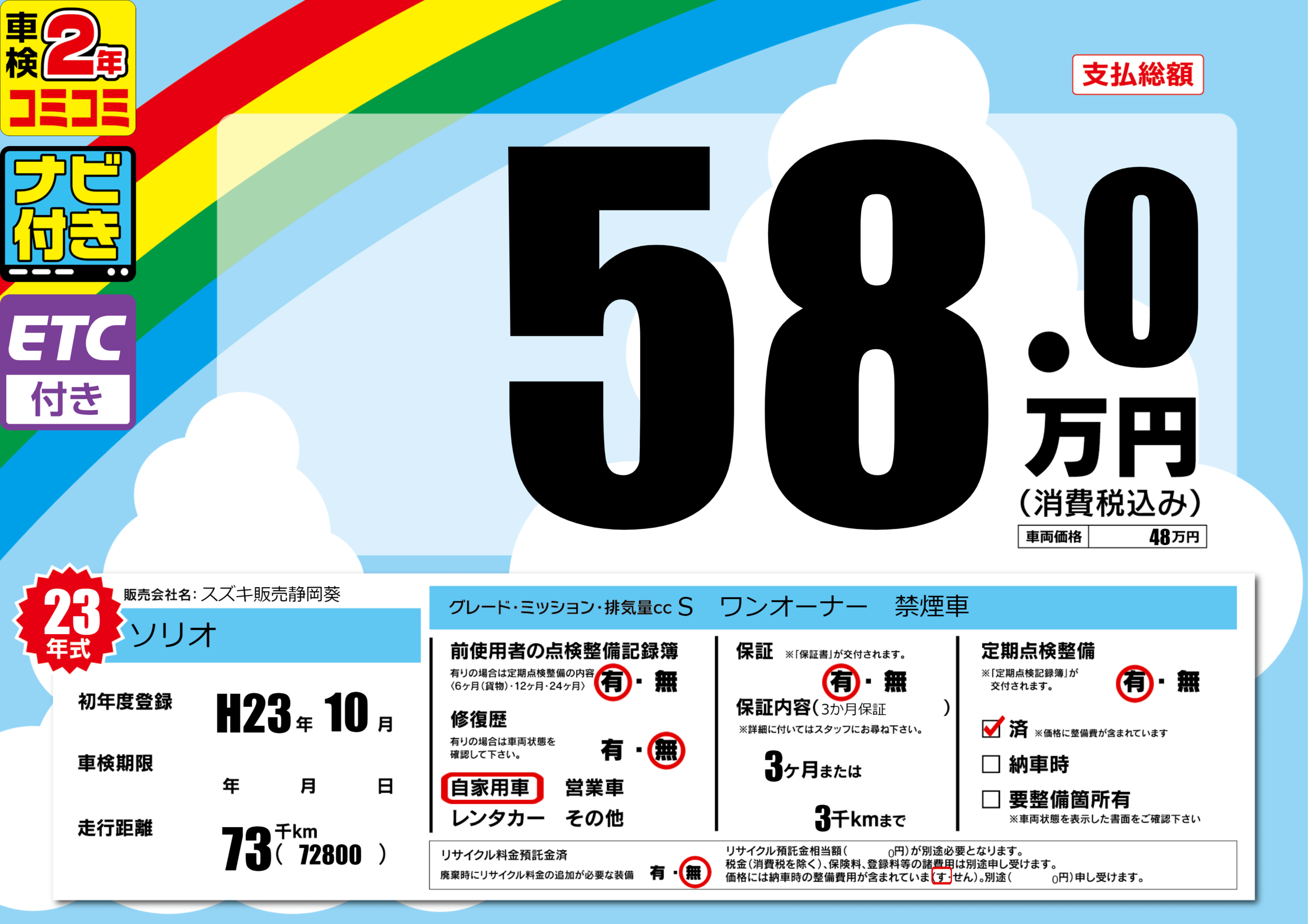 | 定期点検整備 | 定期点検整備あり 定期点検整備済み | ||