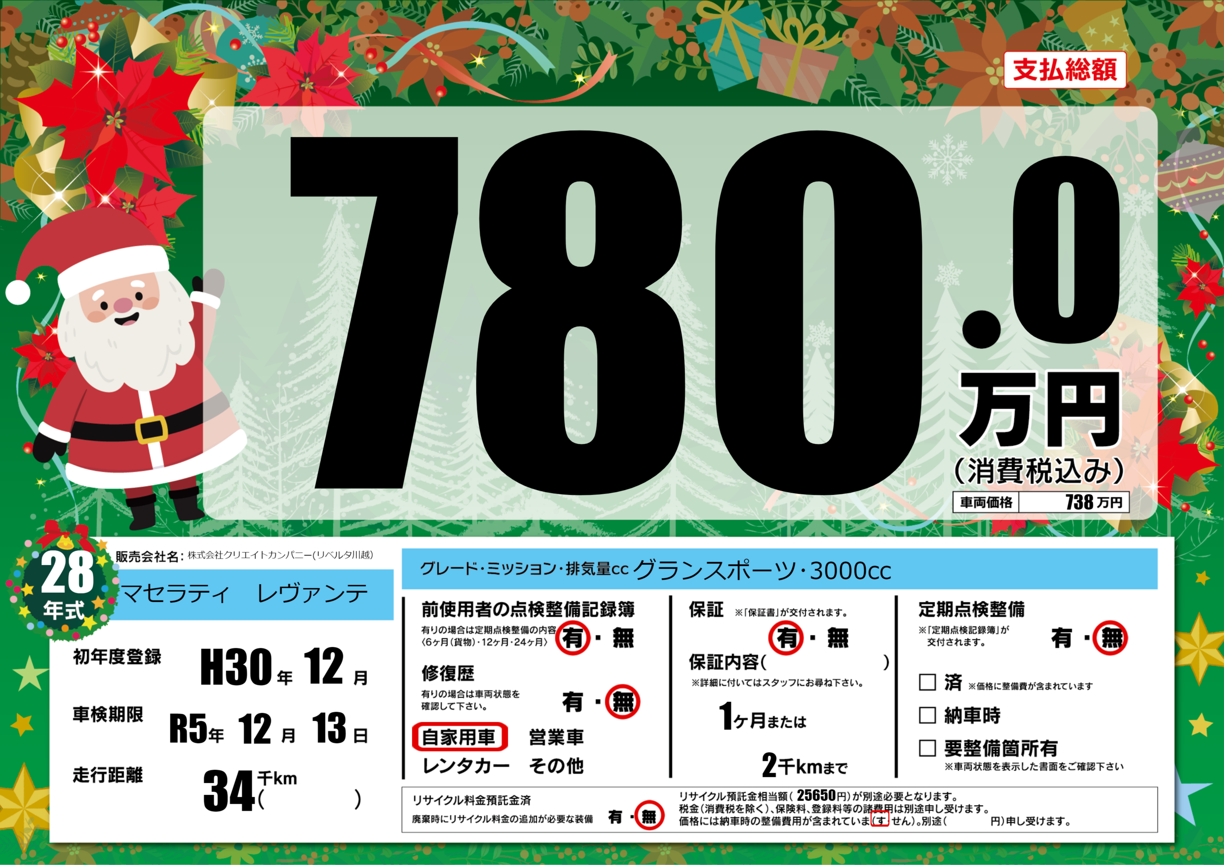| 車名 | マセラティ レヴァンテ | グレード ミッション 排気量 |