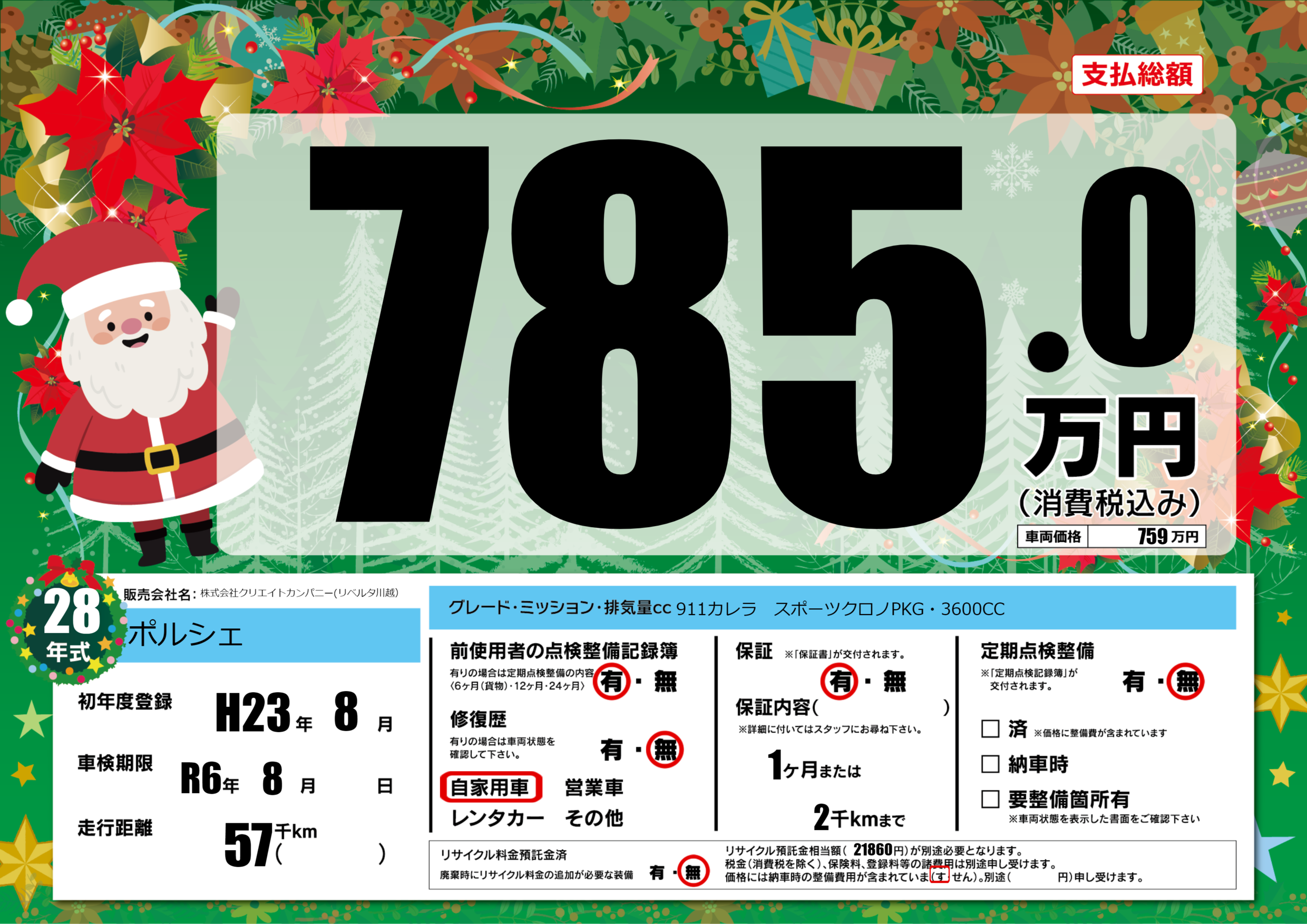 | 車名 | ポルシェ | グレード ミッション 排気量 |