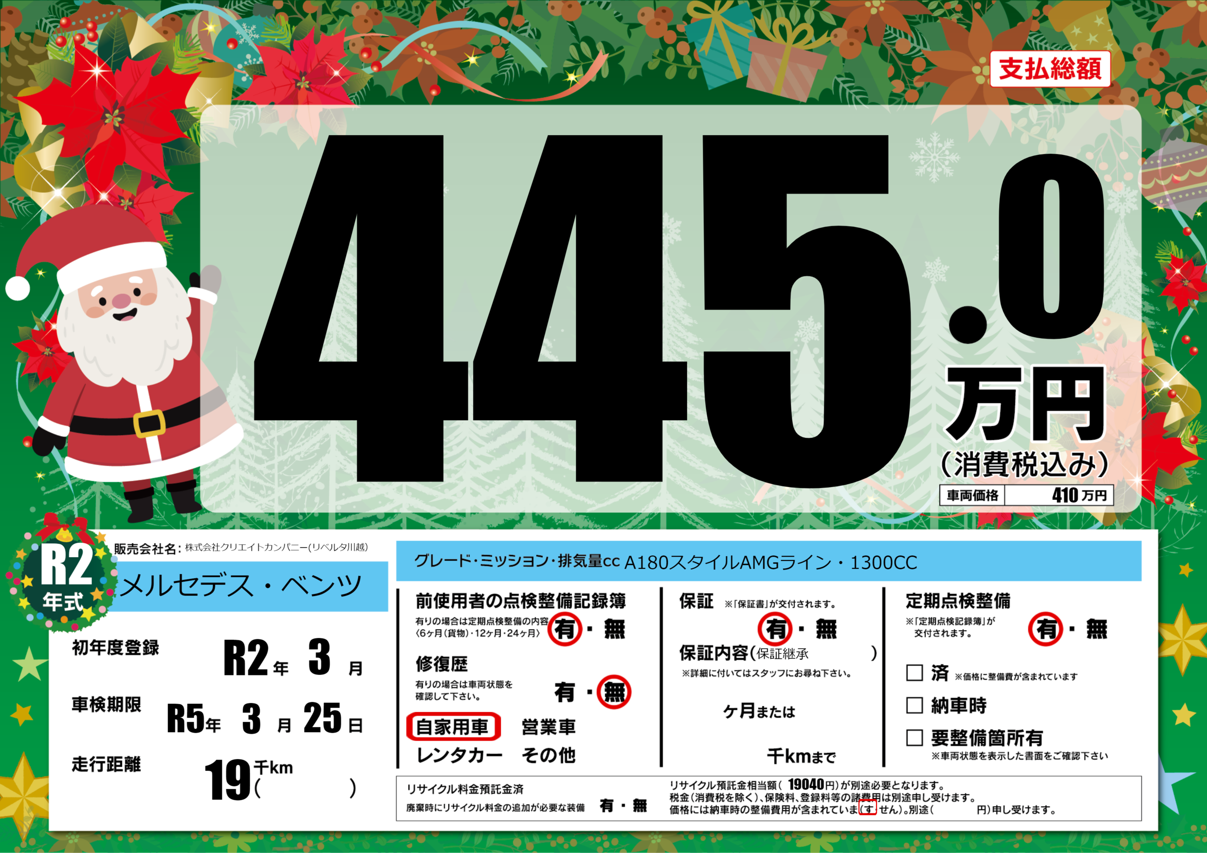 | 車名 | メルセデス・ベンツ | グレード ミッション 排気量 |