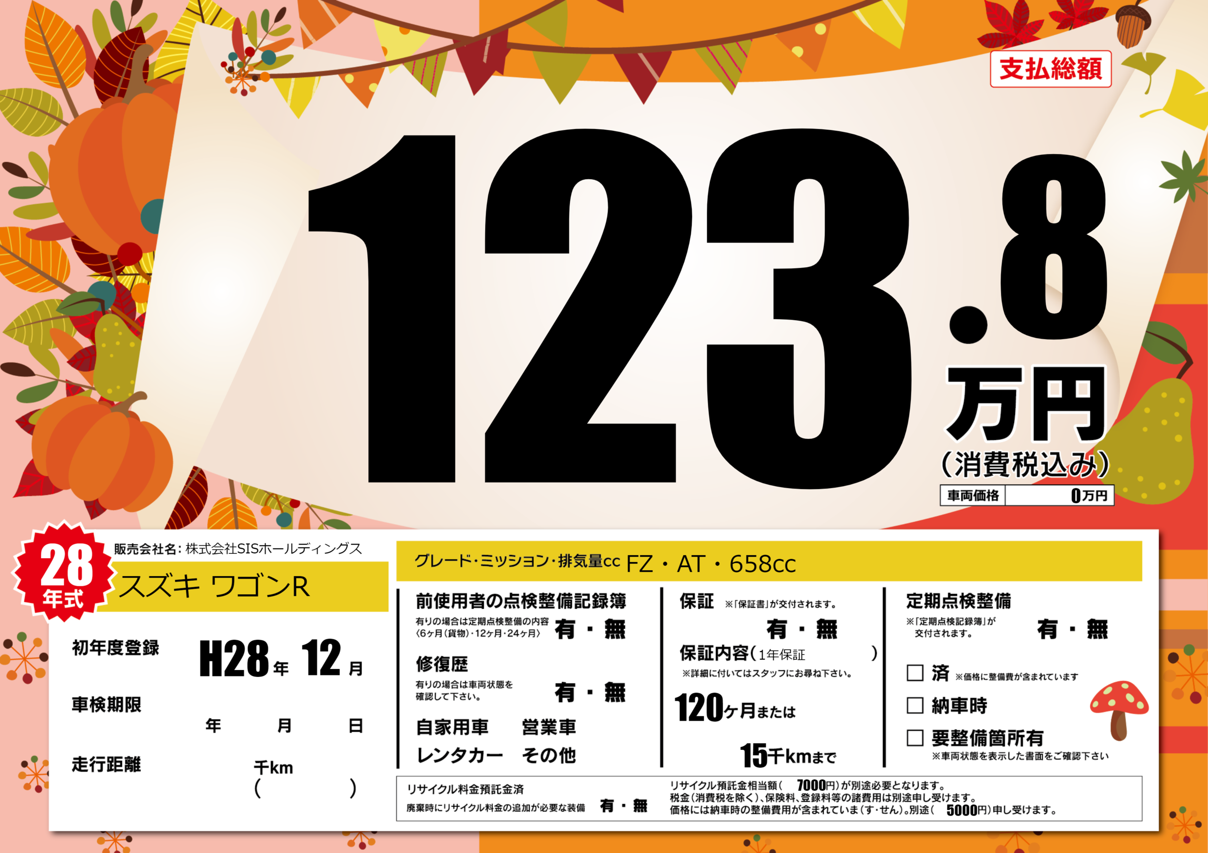 | 走行キロ | - | 初年度登録 | H28年12月 |