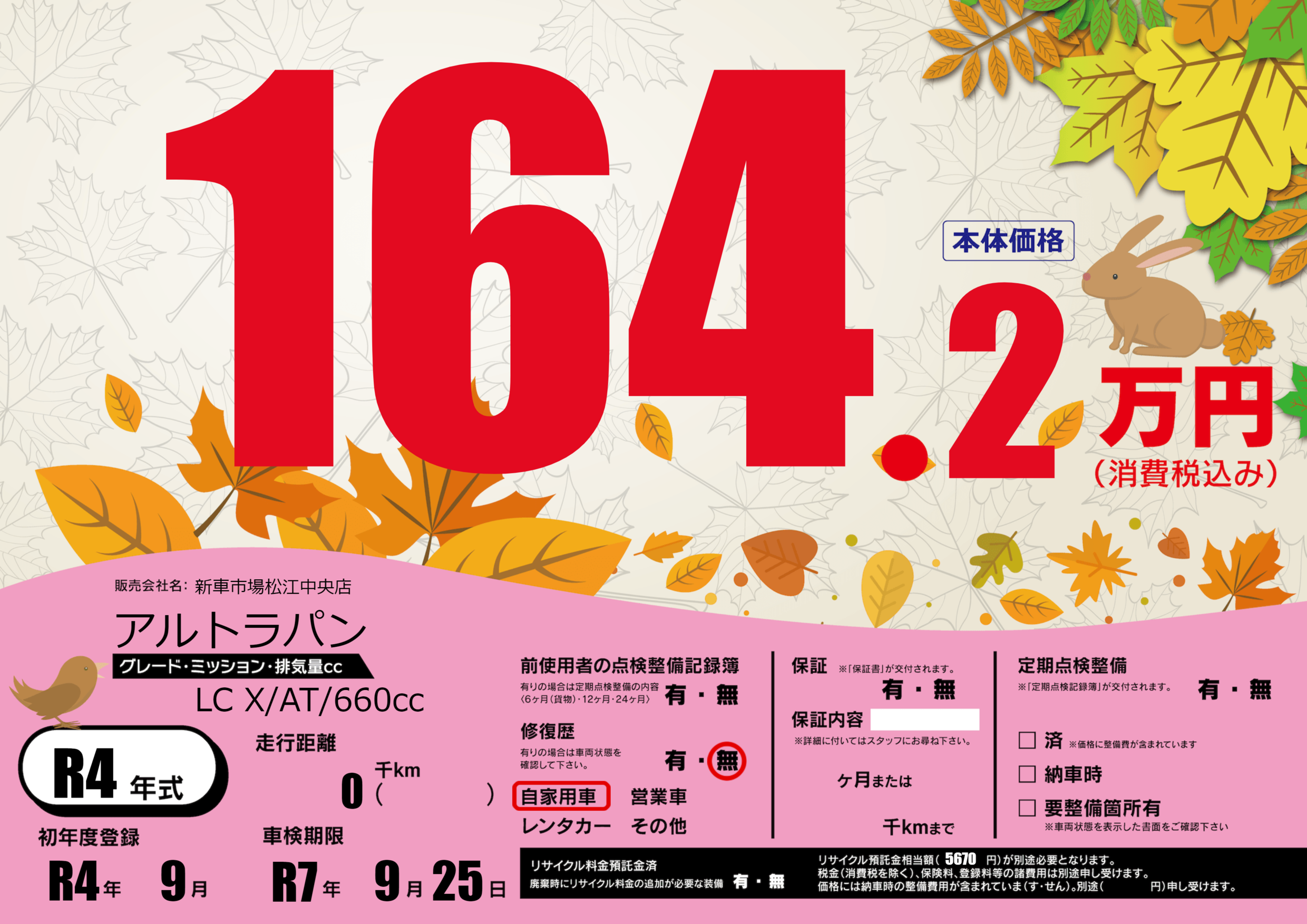 | 走行キロ | - | 初年度登録 | R4年9月 |