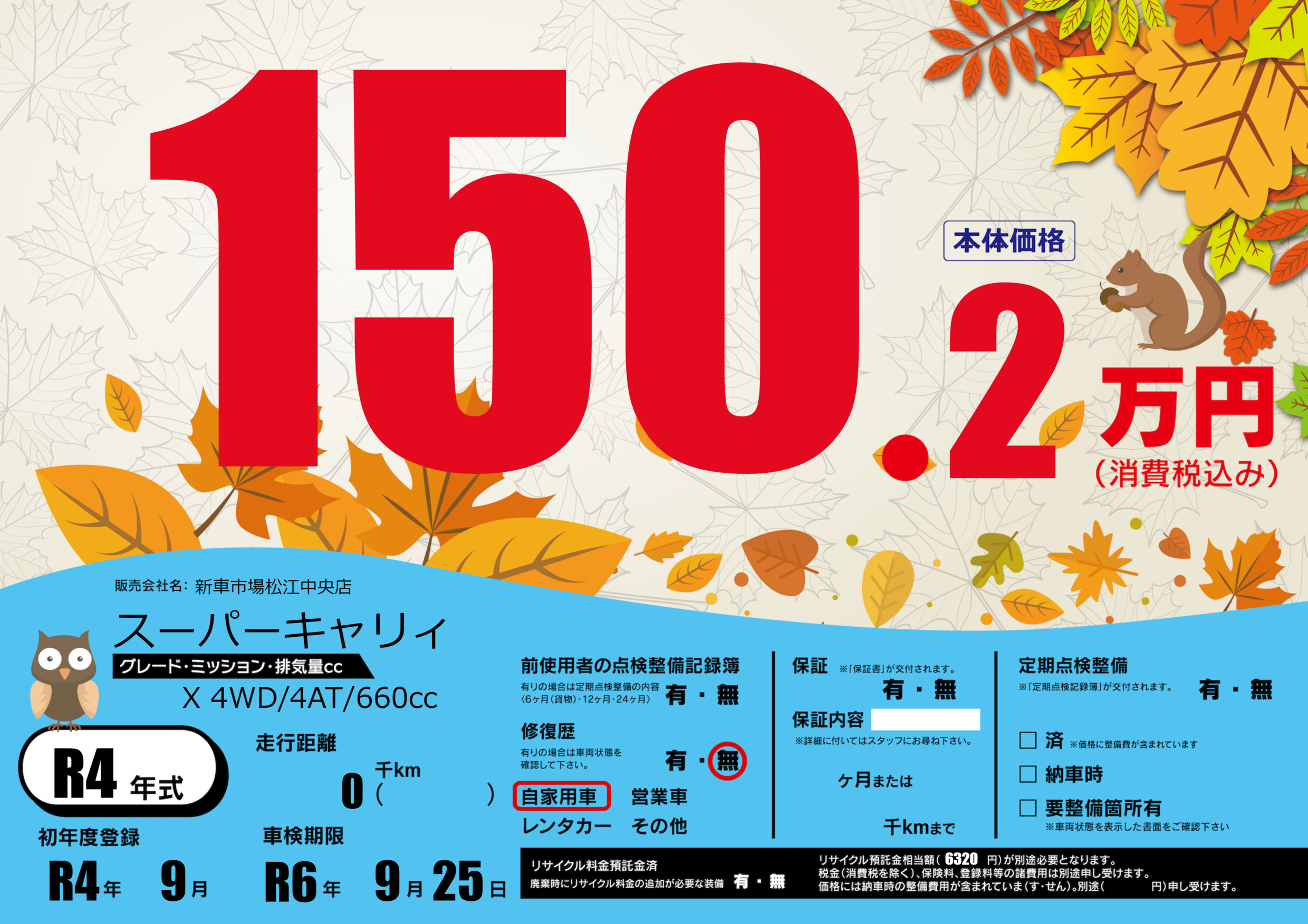 | 車名 | スーパーキャリィ | グレード ミッション 排気量 |