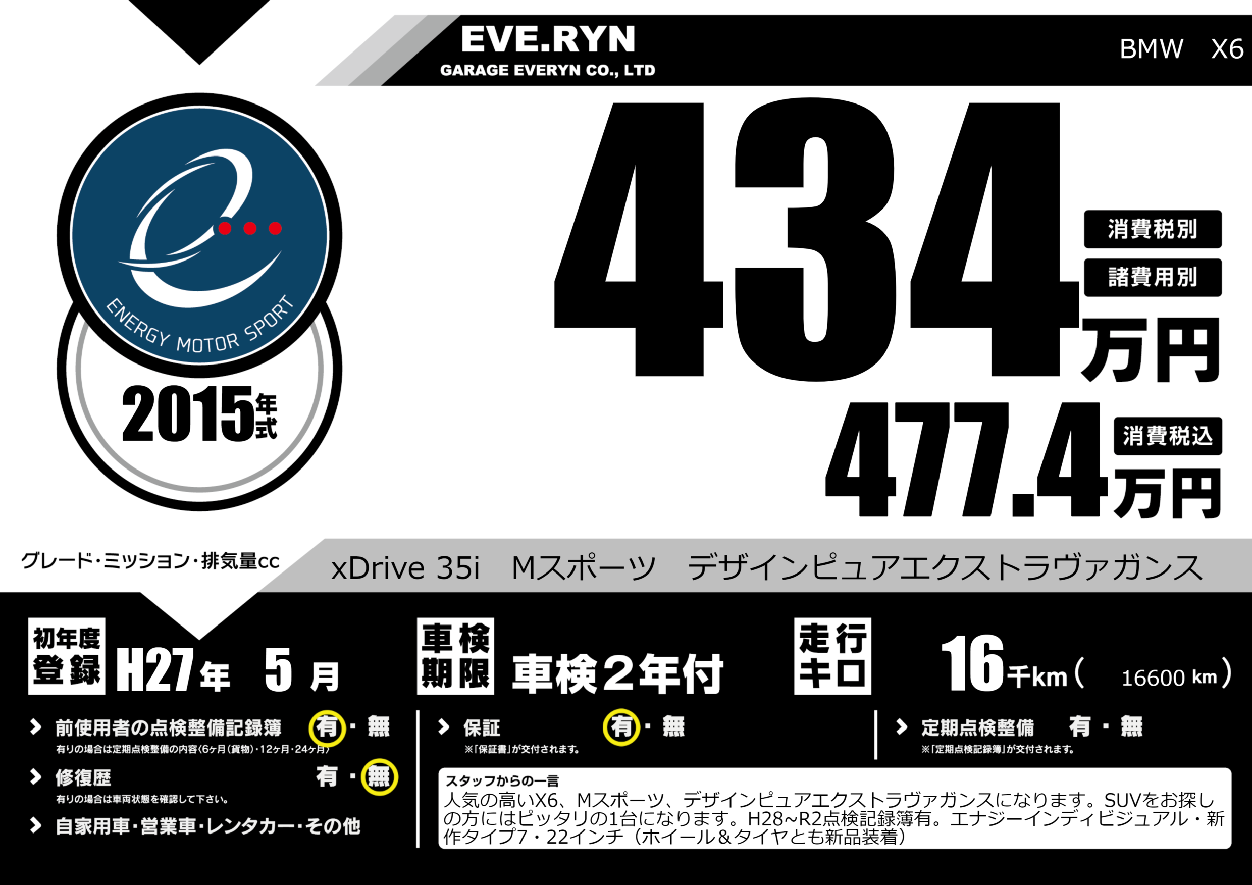 | 車名 | BMW X6 | グレード ミッション 排気量 |