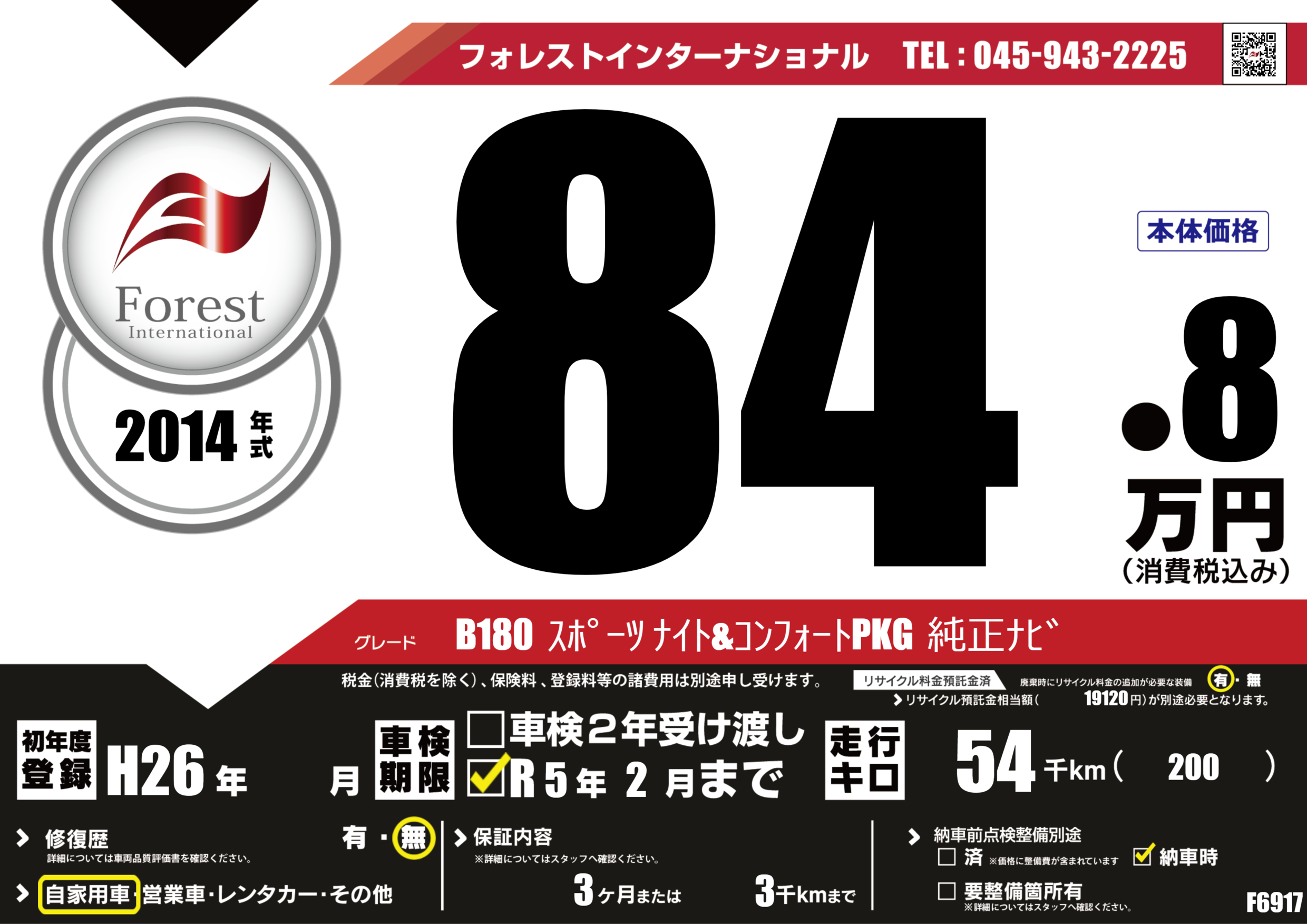 B180 スポーツ ナイト&コンフォートPKG 純正ナビ |