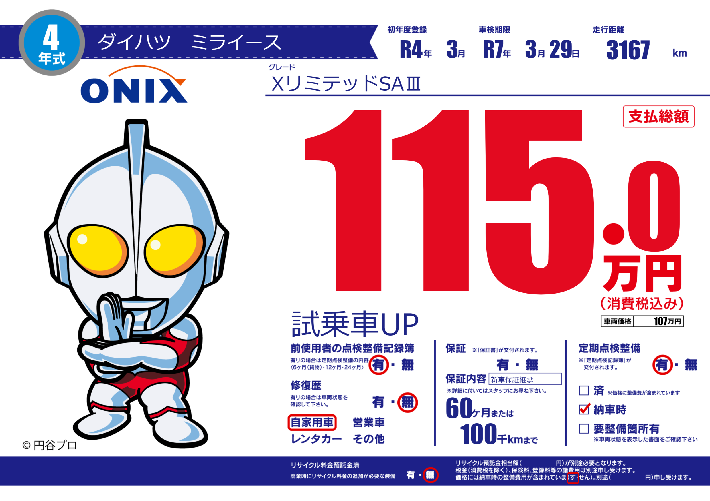 | 走行キロ | 316.7万km | 初年度登録 | R4年3月 |