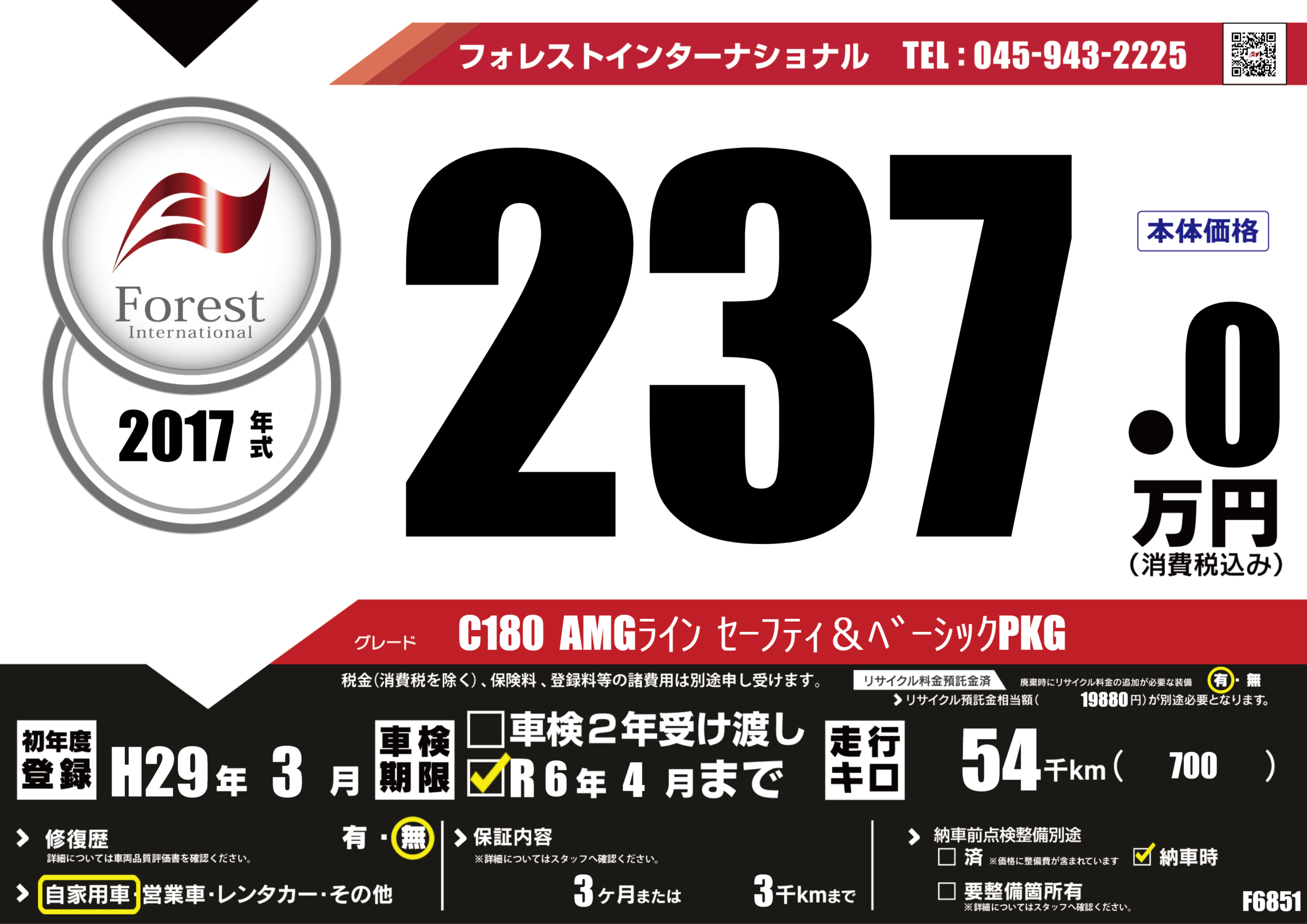 | 走行キロ | 5.4万km | 初年度登録 | H29年3月 |