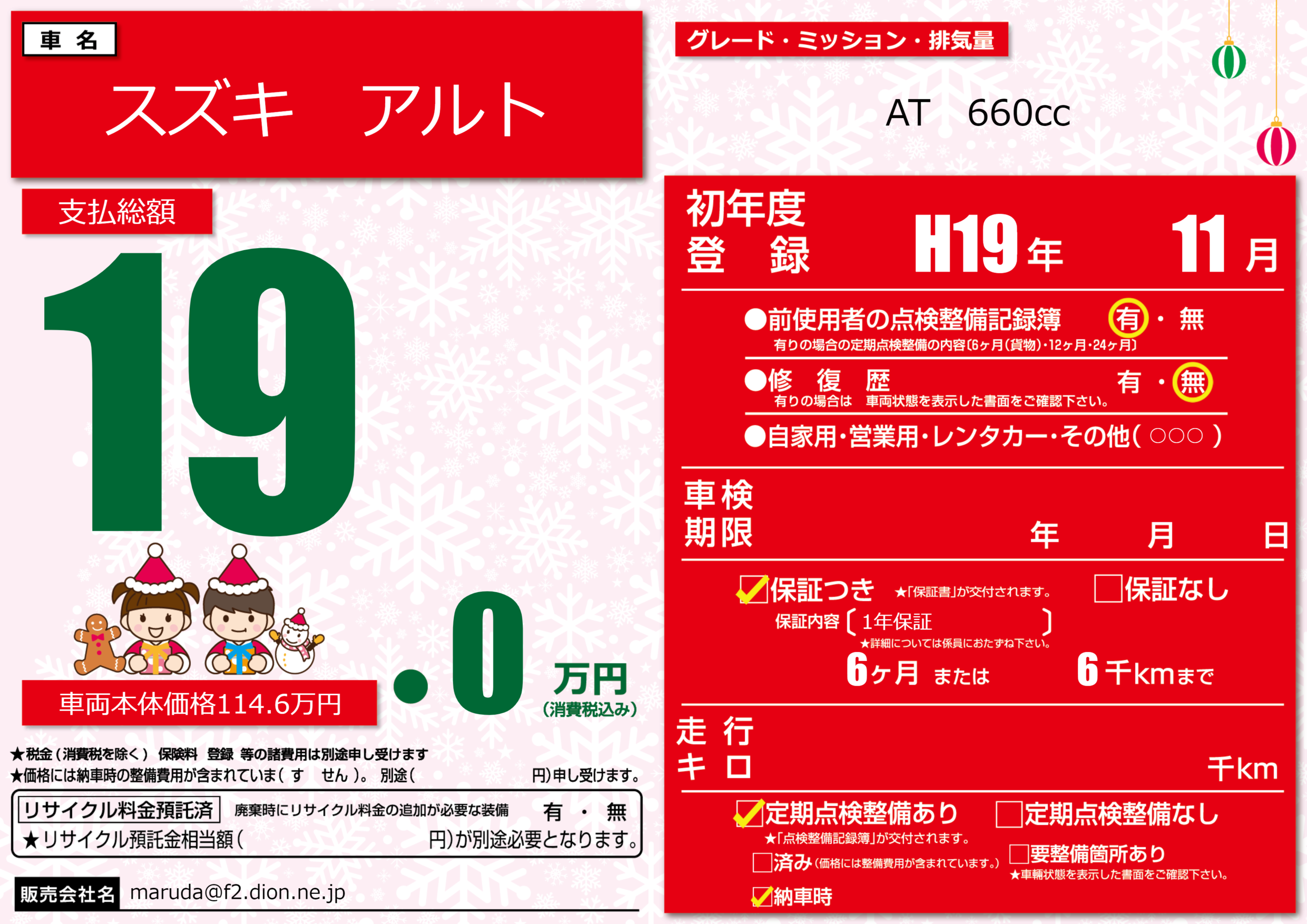 | 定期点検整備 | 定期点検整備あり 納車時あり | ||