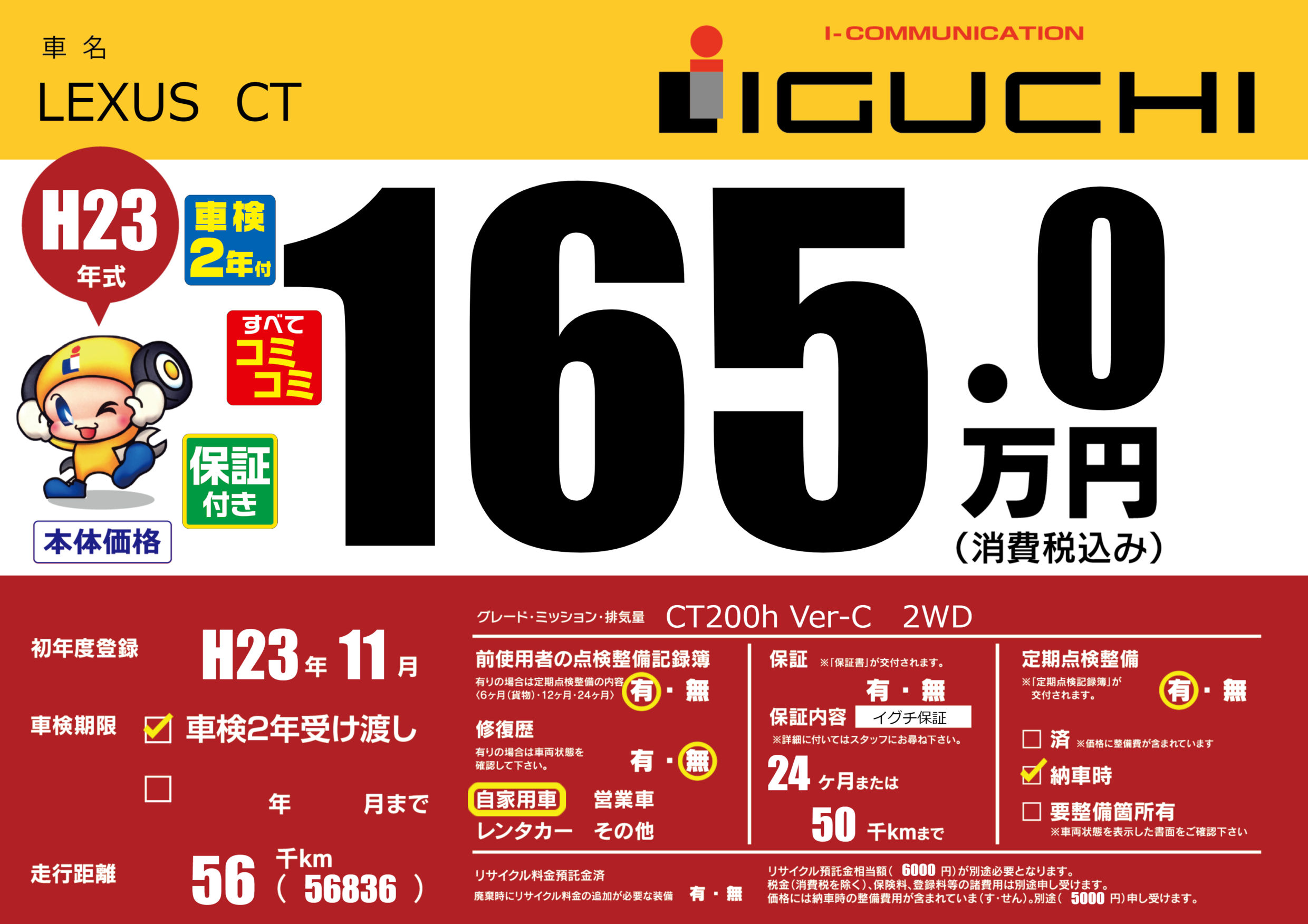 保証なし 保証内容(イグチ保証) 24ヶ月または(50)千kmまで |