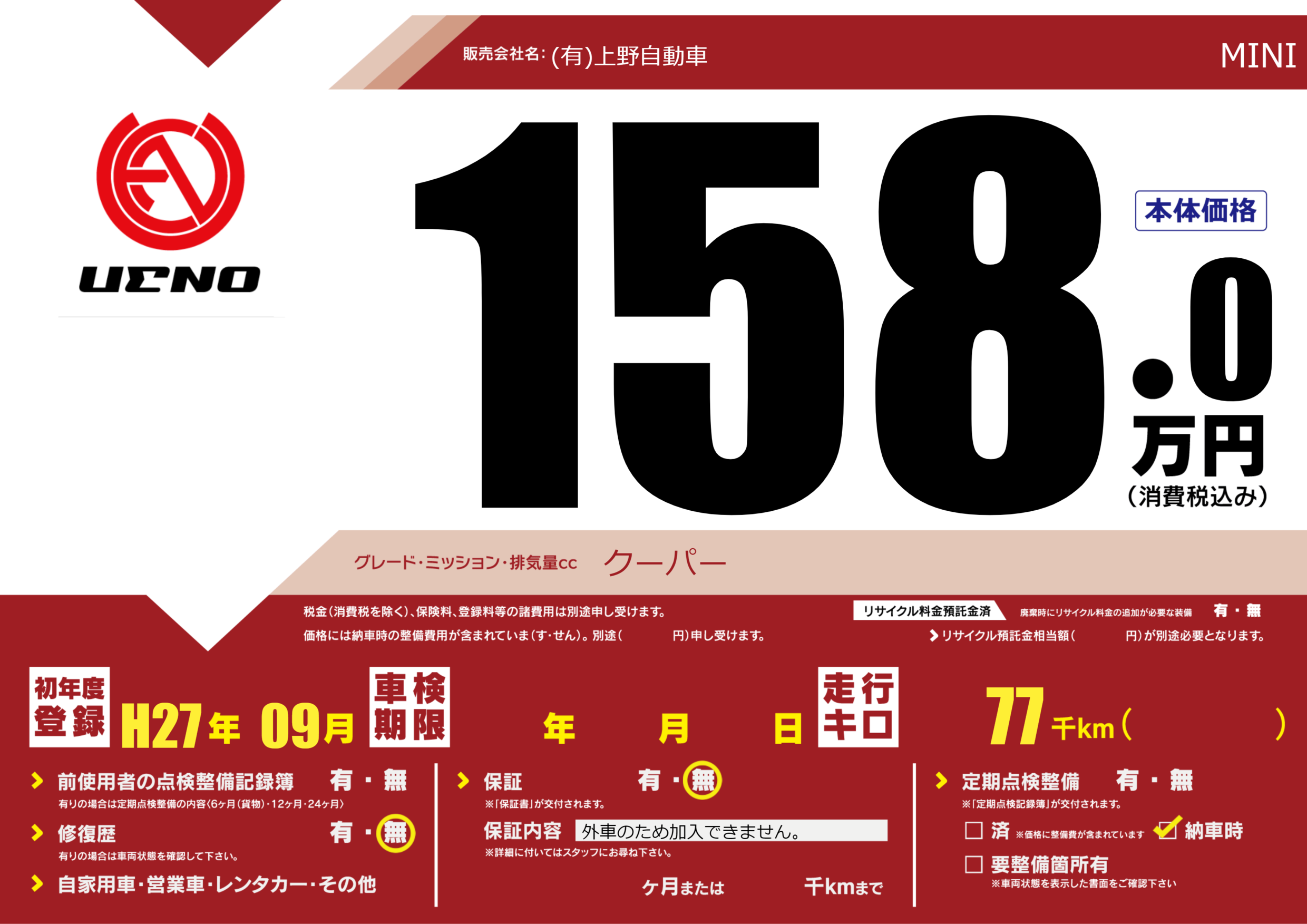 保証なし 保証内容(外車のため加入できません。) ---ヶ月または()千kmまで |