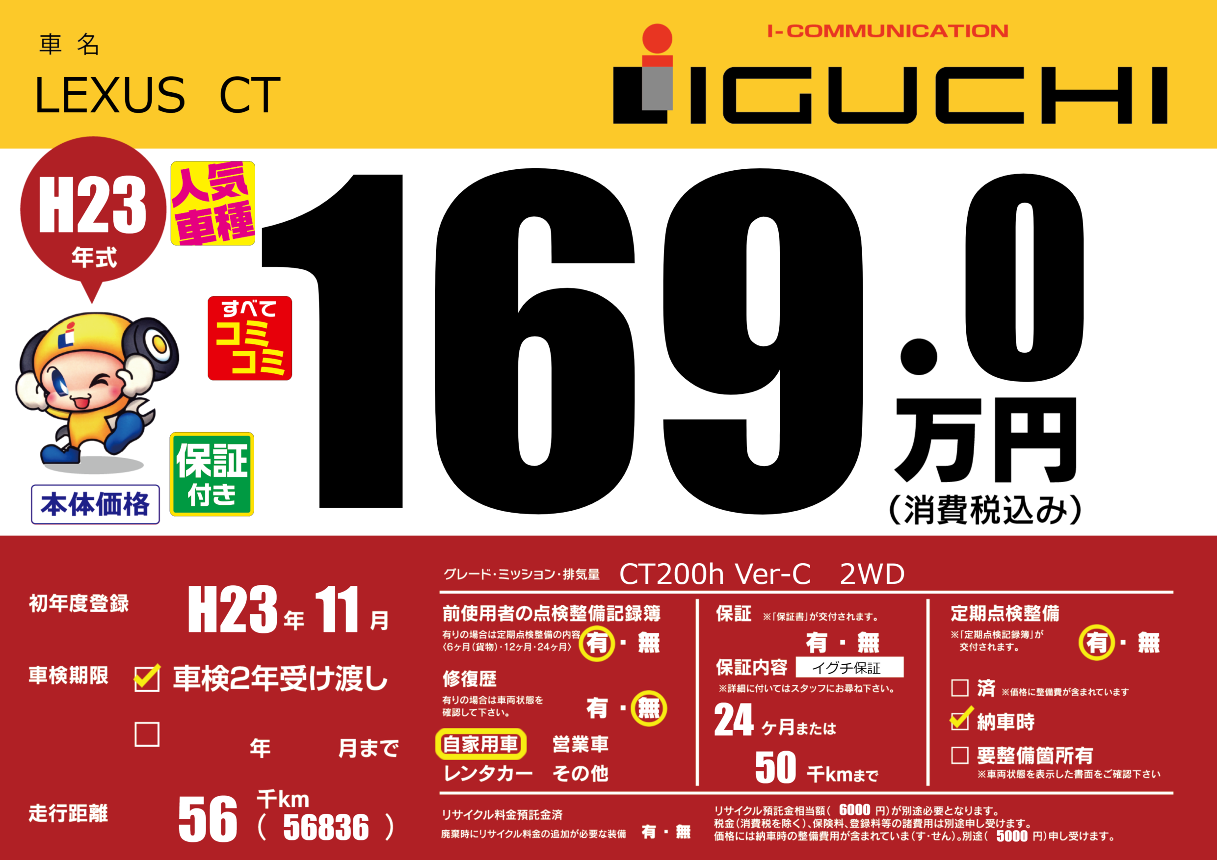 保証なし 保証内容(イグチ保証) 24ヶ月または(50)千kmまで |