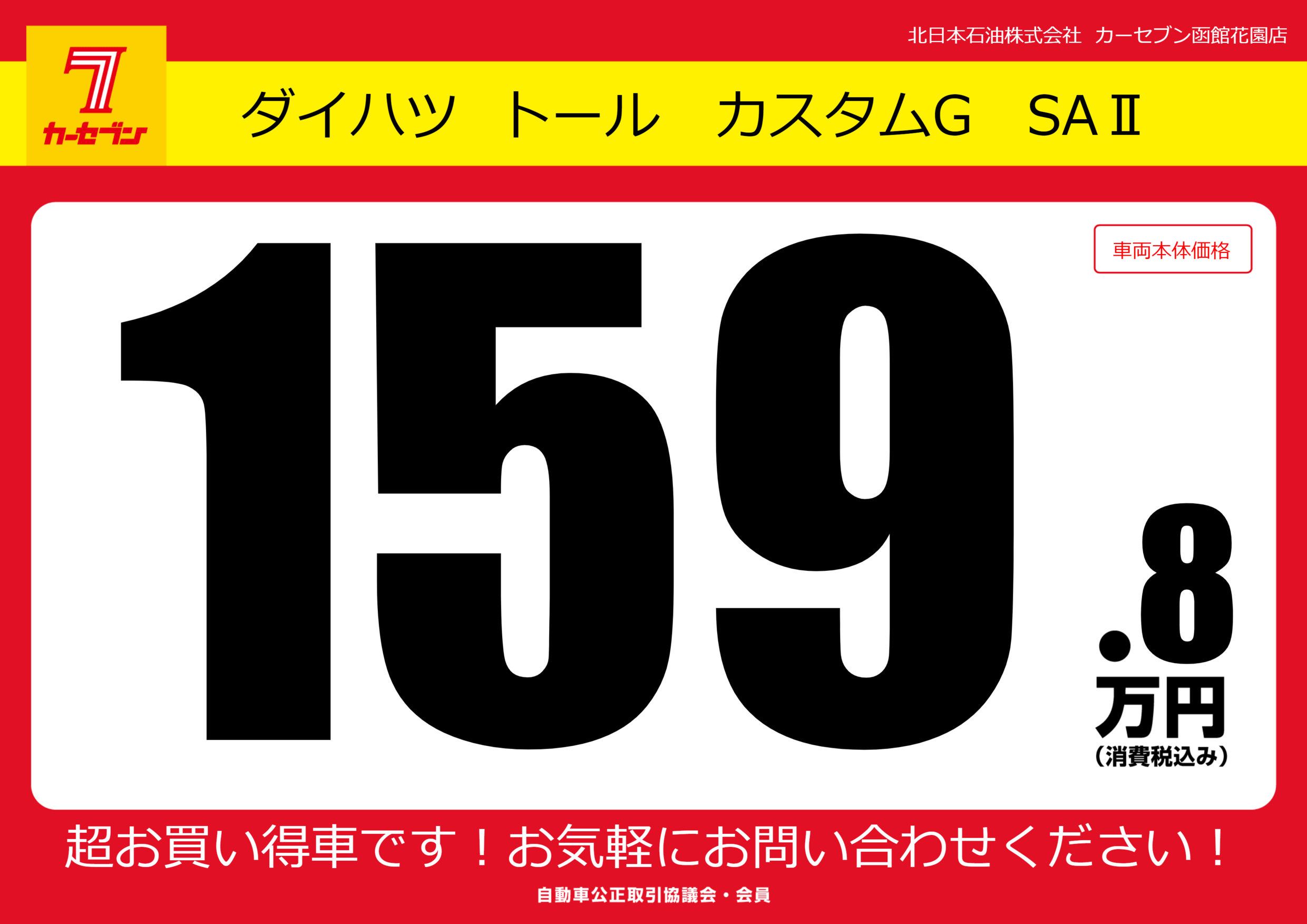 | 車名 | ダイハツ トール カスタムG SAⅡ | グレード ミッション 排気量 |