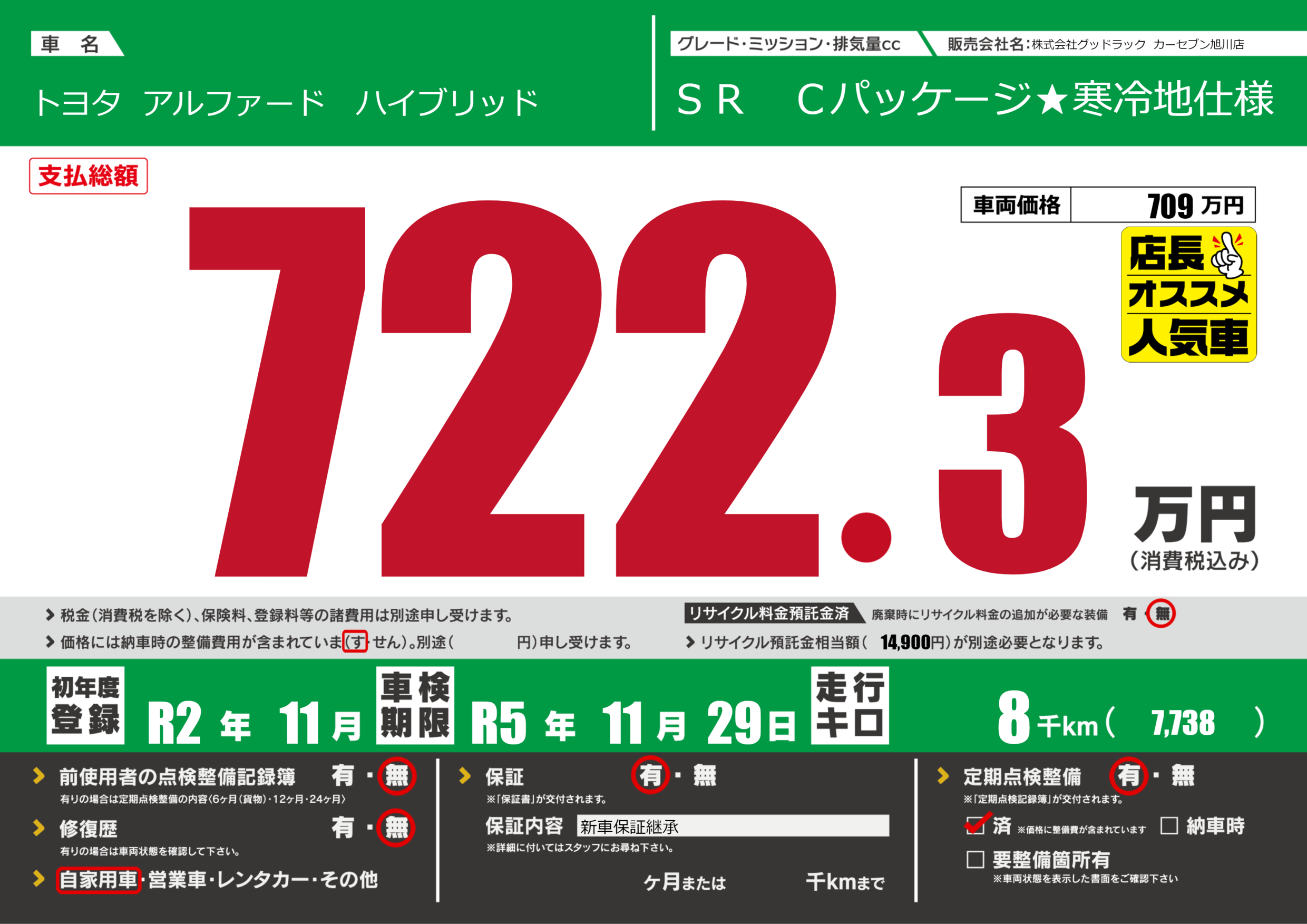 | 定期点検整備 | 定期点検整備あり 定期点検整備済み | ||