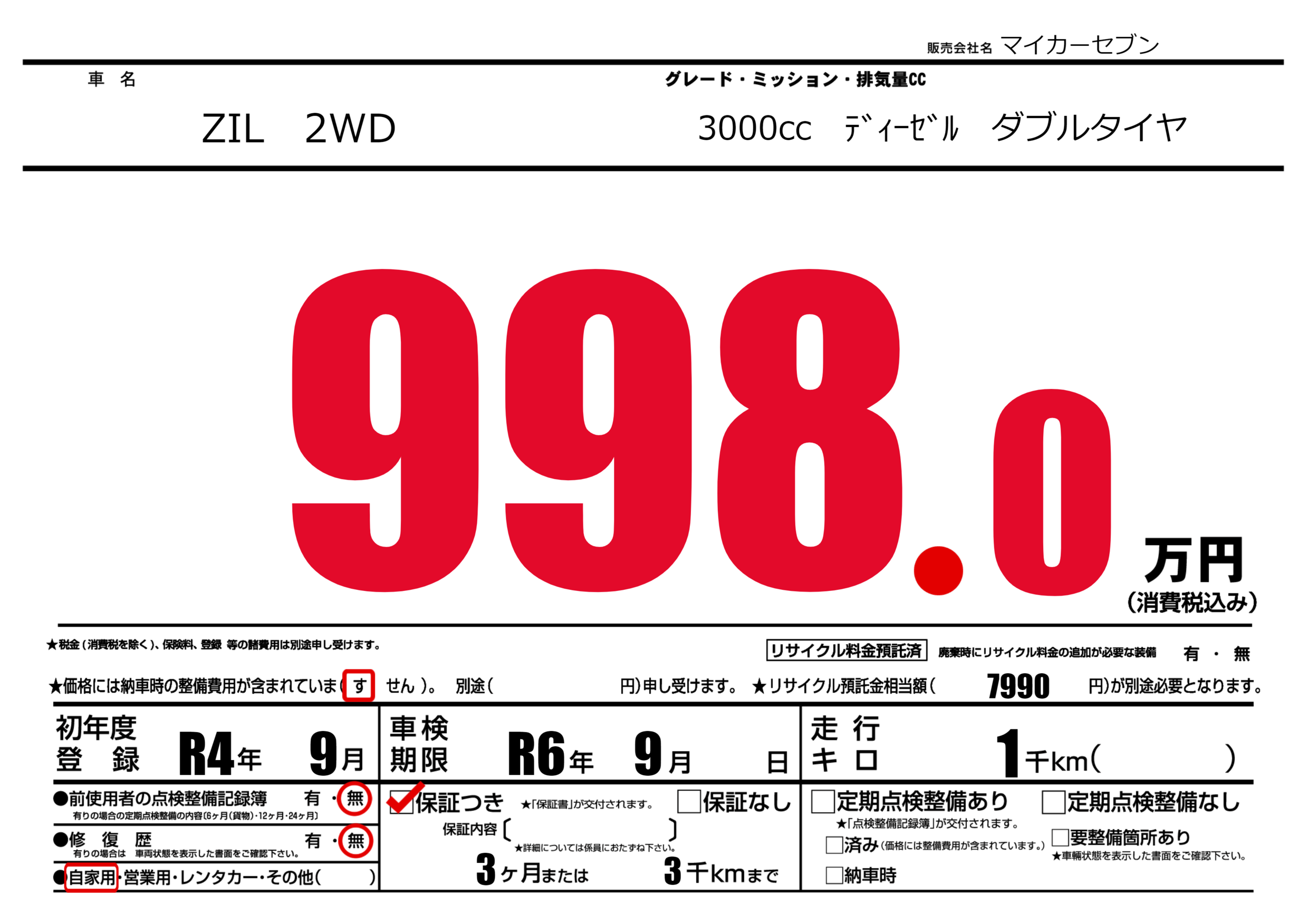 | 車名 | ZIL 2WD | グレード ミッション 排気量 |
