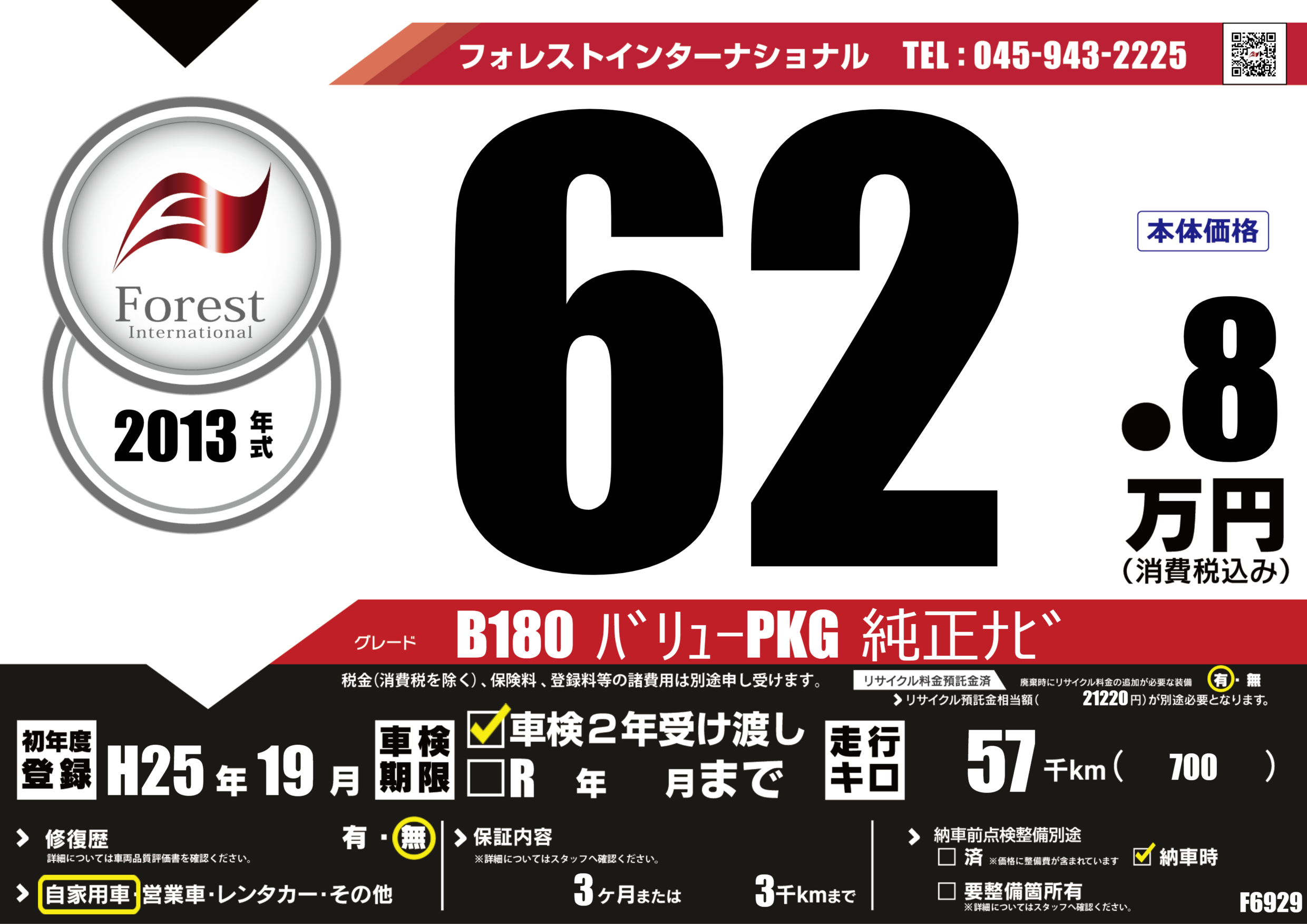 | 走行キロ | 5.7万km | 初年度登録 | H25年19月 |
