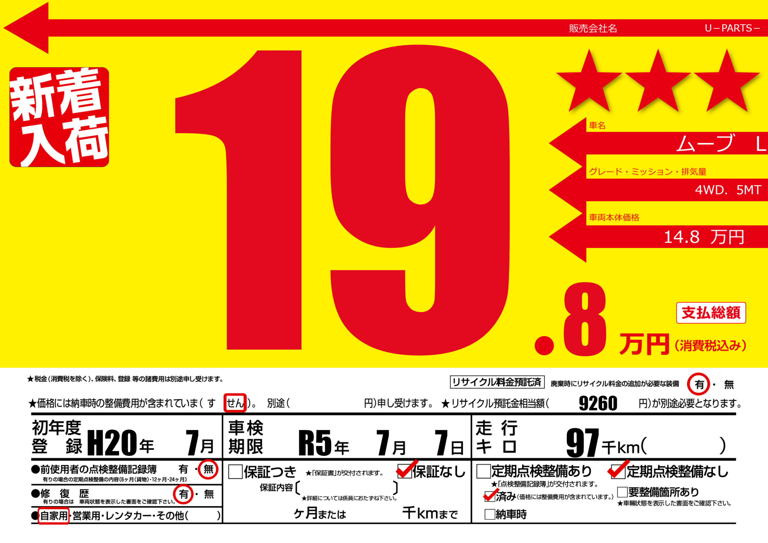 | 定期点検整備 | 定期点検整備なし 定期点検整備済み | ||