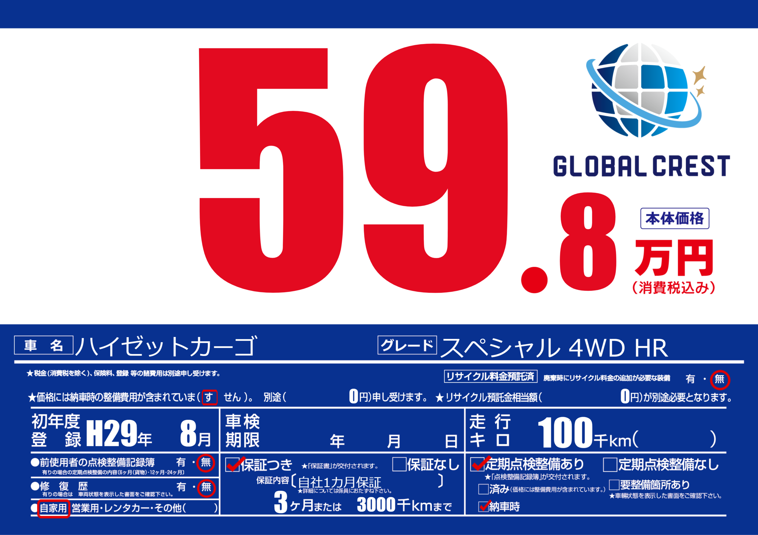 保証内容(自社1カ月保証) 3ヶ月または3000千km